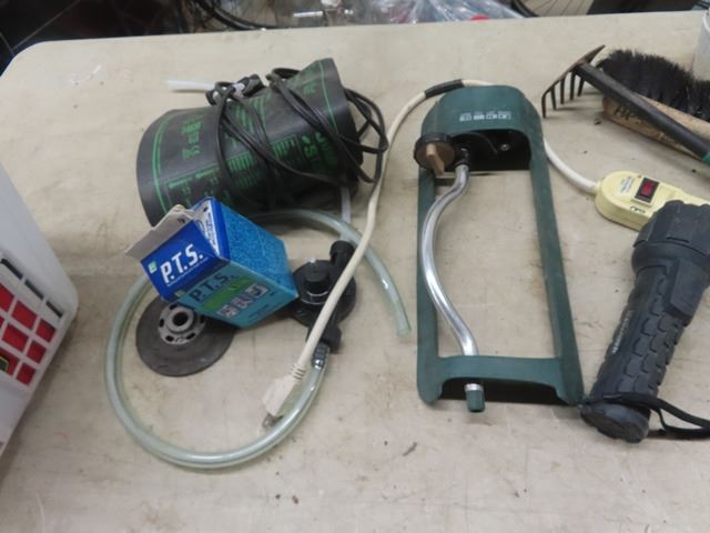 Lawn Sprinkler, Power Bar, Battery Trickle Charger Flower Bed Tools, Drill Drive Pump plus more