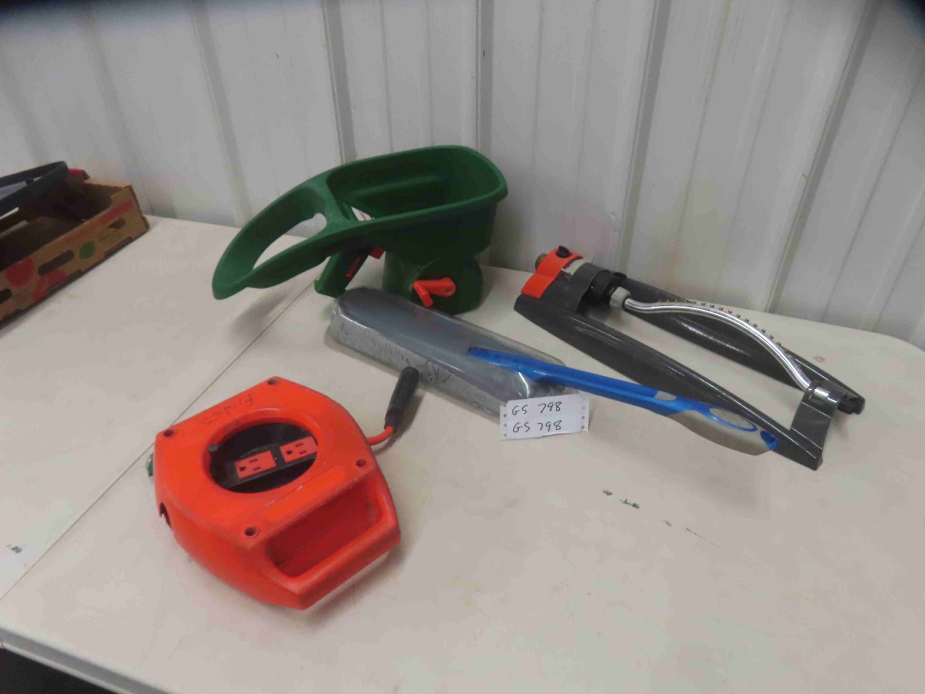 Lawn Sprinkler, Retracting Extension Cord, Scotts Grass Seed Broadcaster, Plus