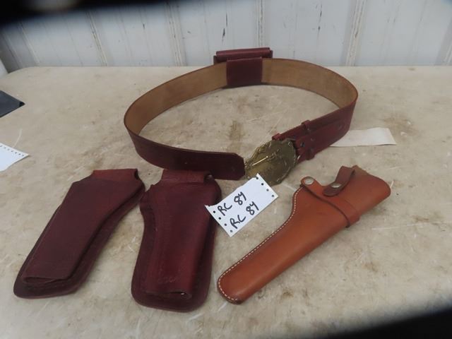 Leather Belt with Ammo Pouch, Gun Buckle & 3 Holsters