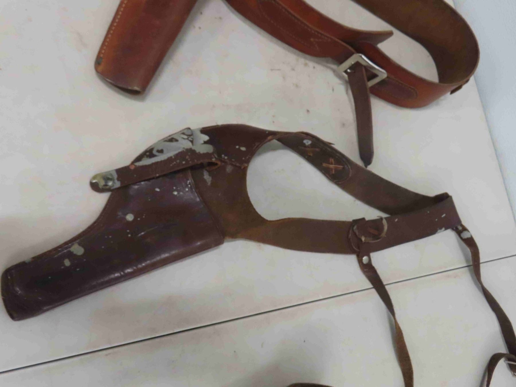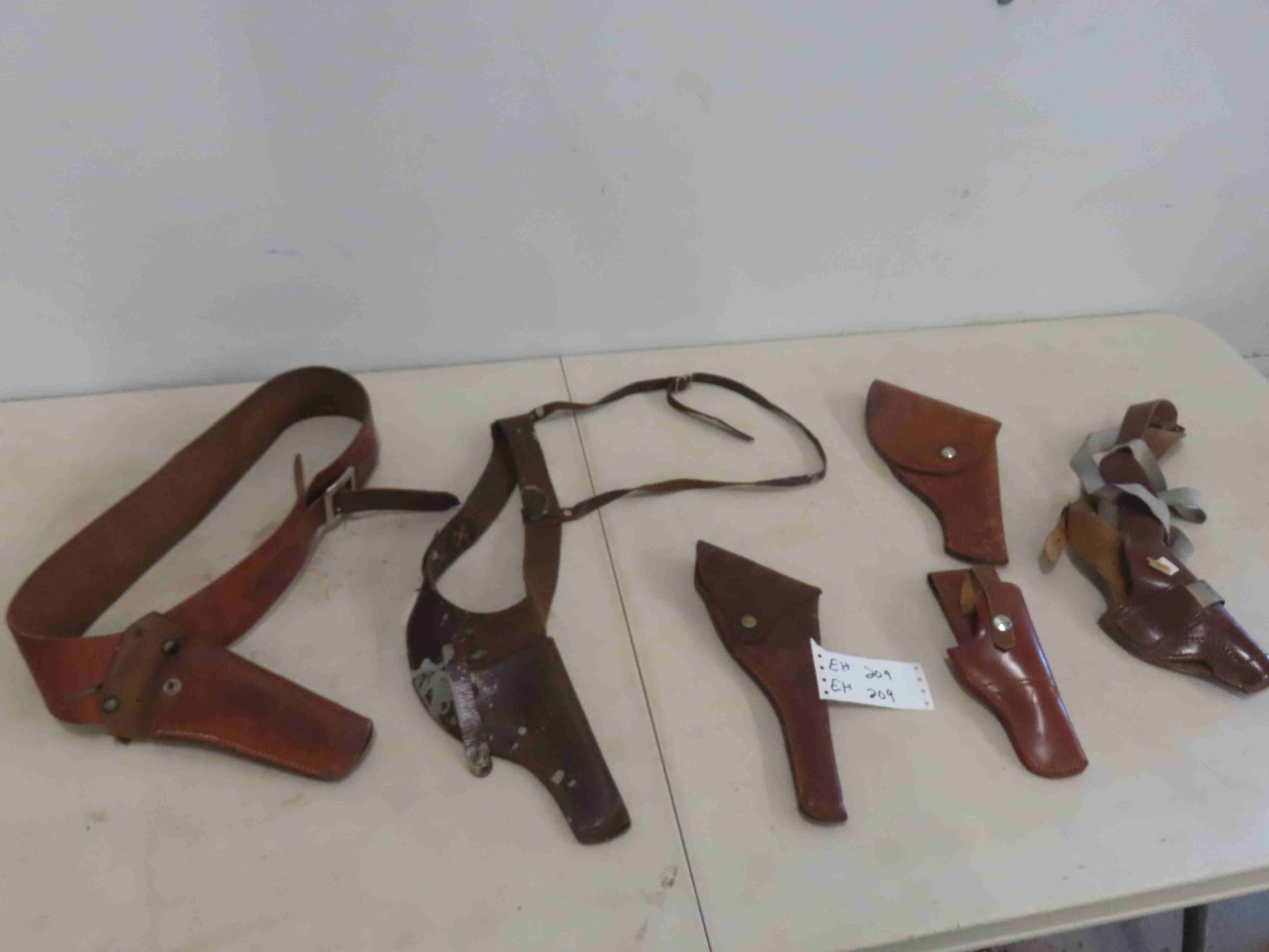 Leather Holster and Belt, 2 Holsters with Shoulder Straps & 3 More Holsters