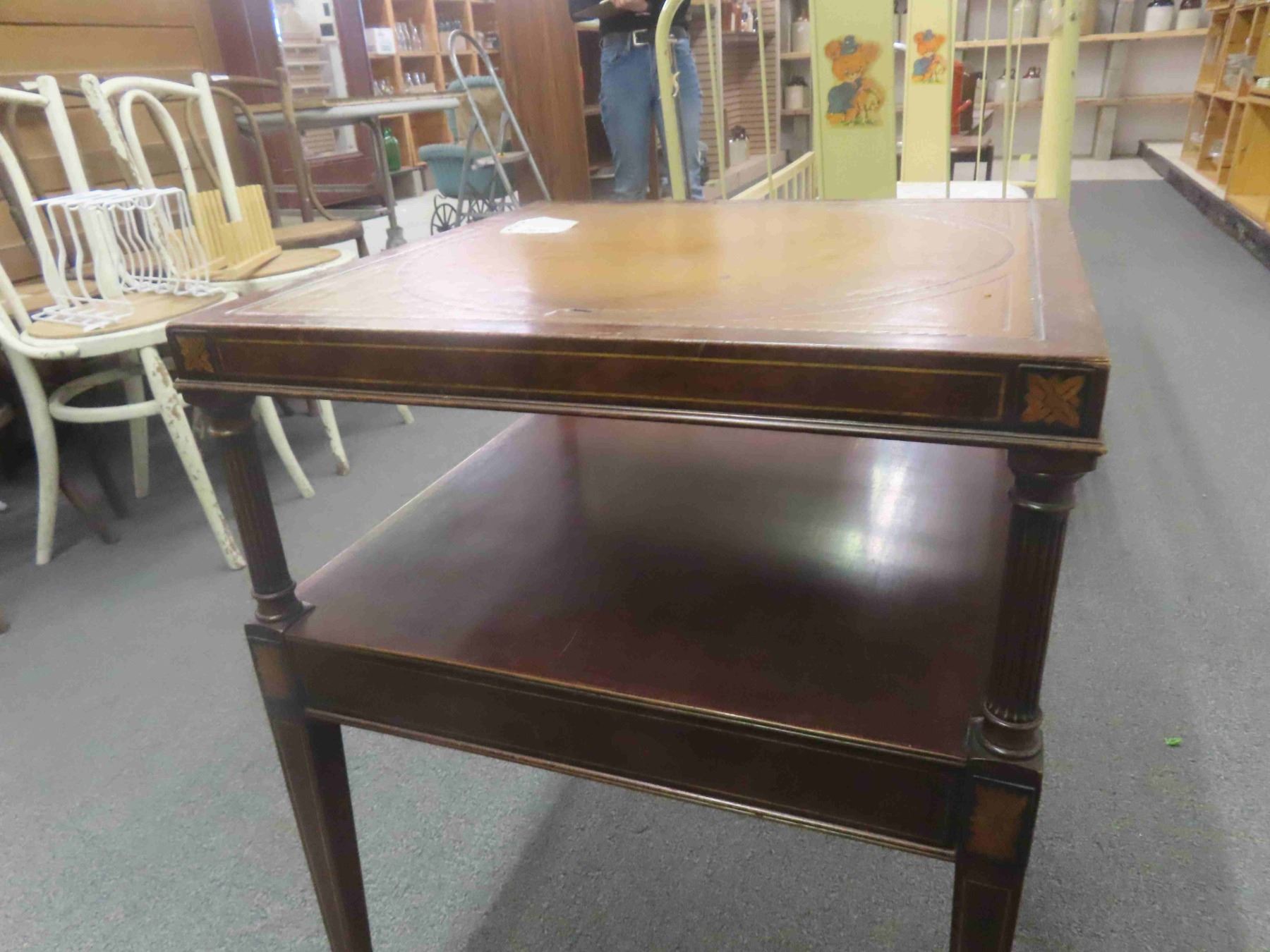 Leather Inlay Walnut Stand 20" x 20" x 26" t