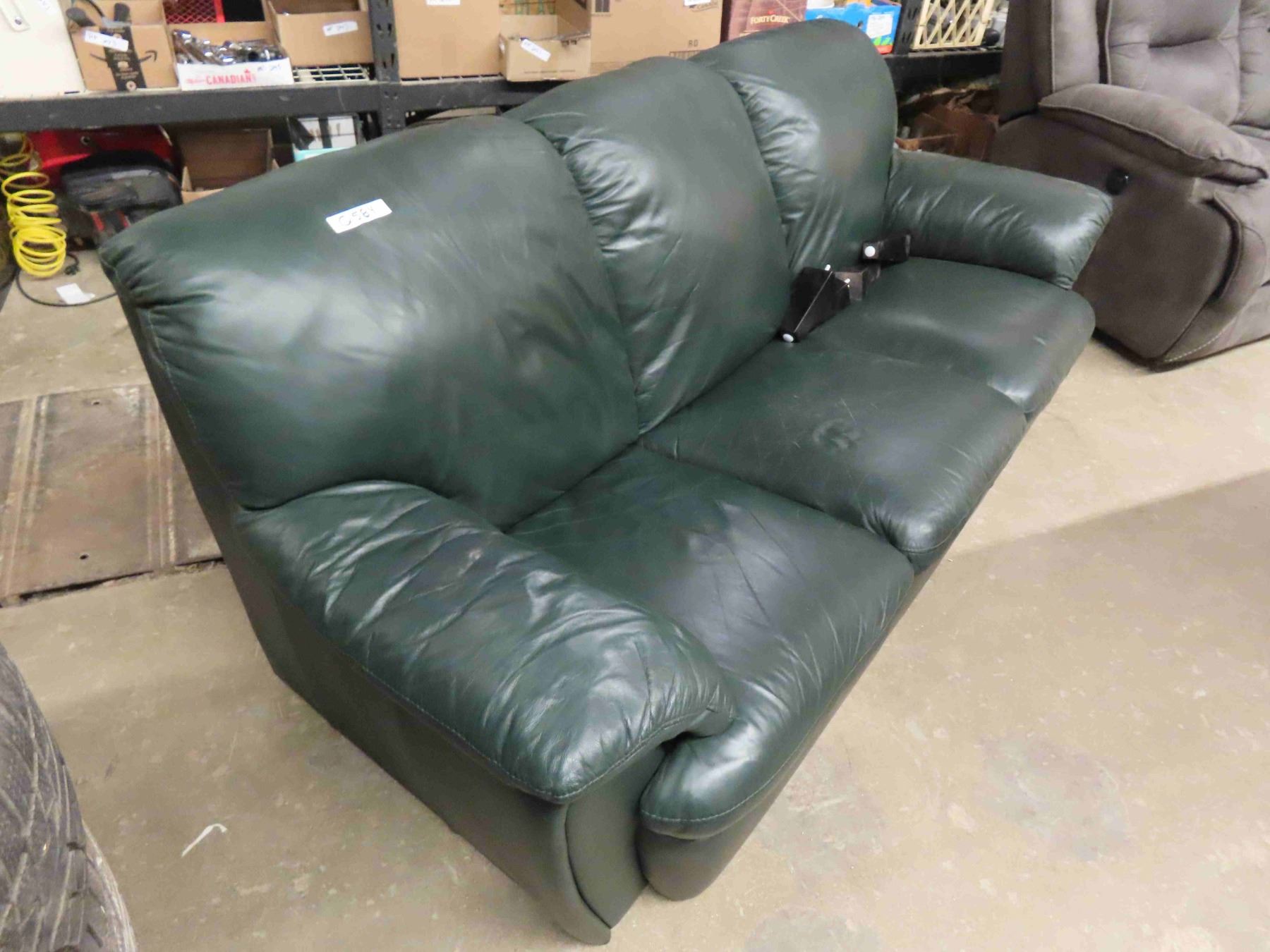 Leather/ Leather Look Couch - Legs Are There But Need to be Installed 82" Wide - Very Soft + Comfy Dark Green