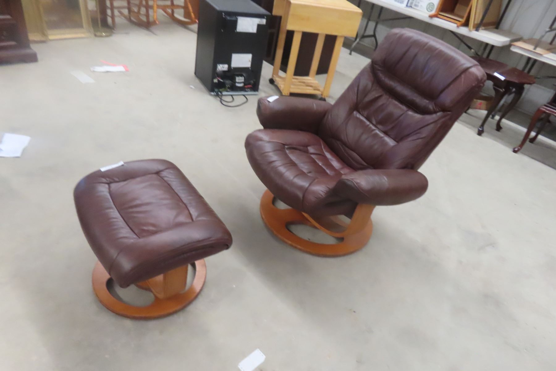Leather / Leather Style Reclining Swivel Chair with Ottoman