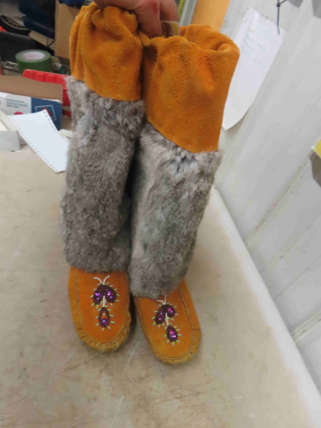 Leather Mukluks - Beaded with Fur