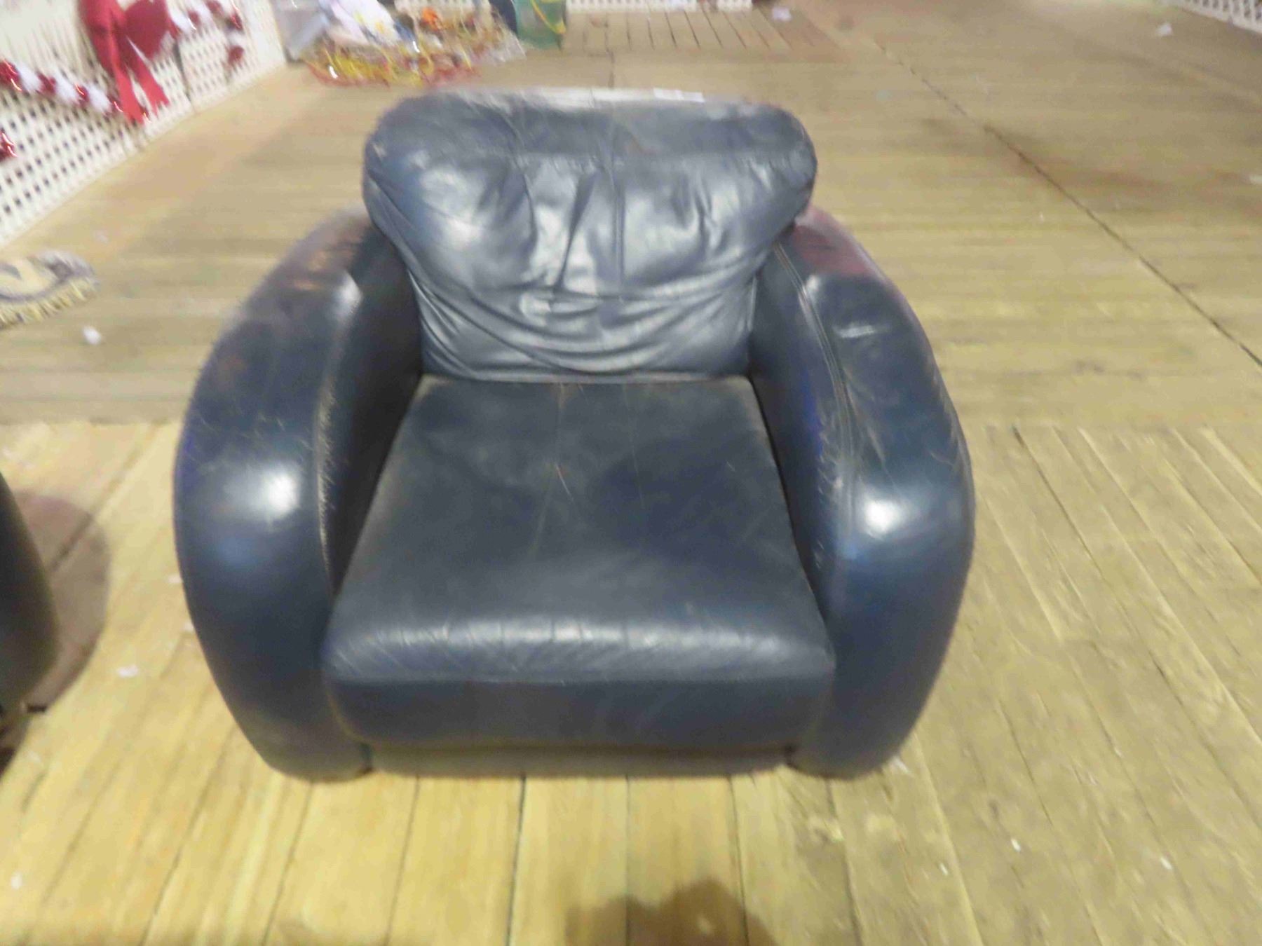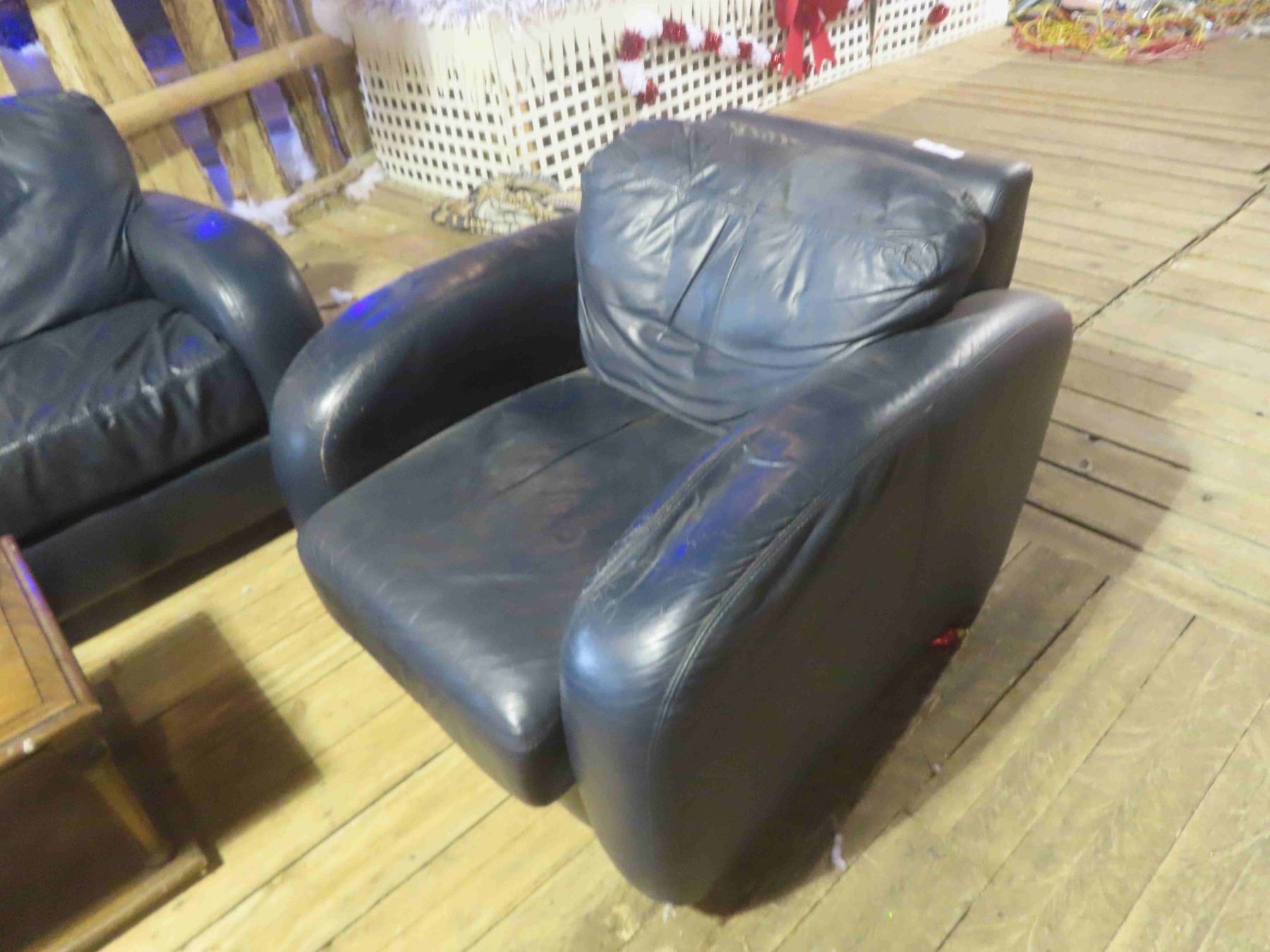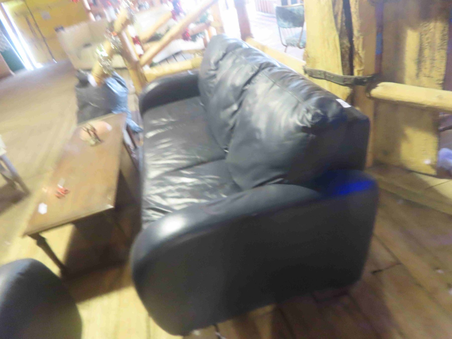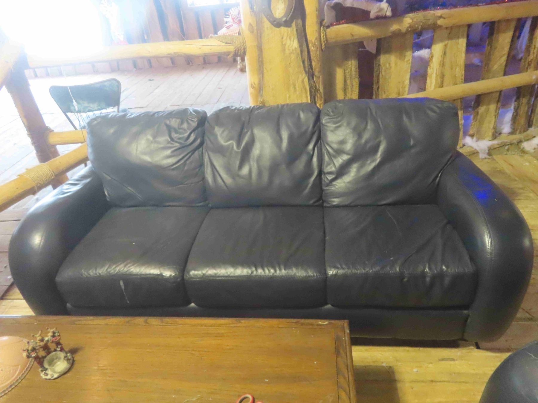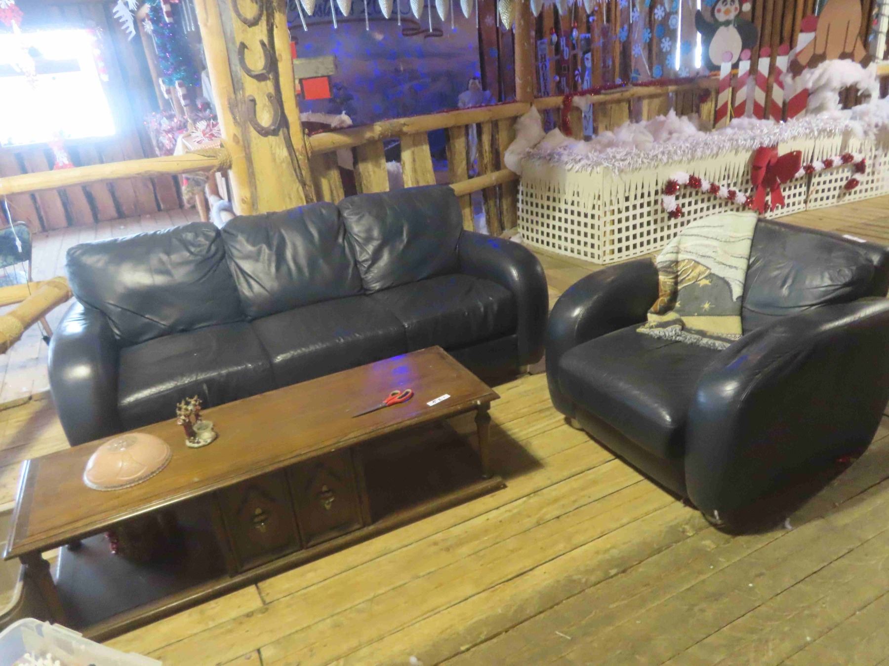 Leather Style Couch and Chair (Has Some Wear) & Coffee Table
