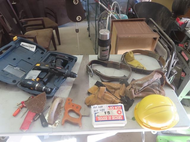 Leather Tool Belt, Saw, 1st Aid Kit, Helmet, 18V Craftsman