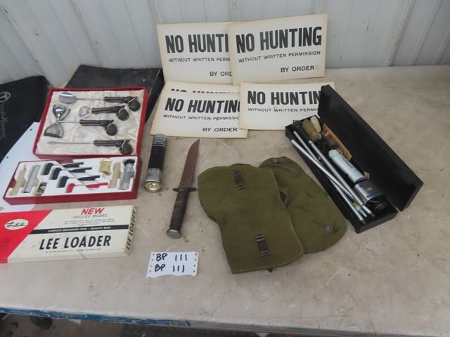 Lee Reloading Tool , Paper No Hunting Signs, Knives, Pack of Bartender Tools with Pistol handles plus more