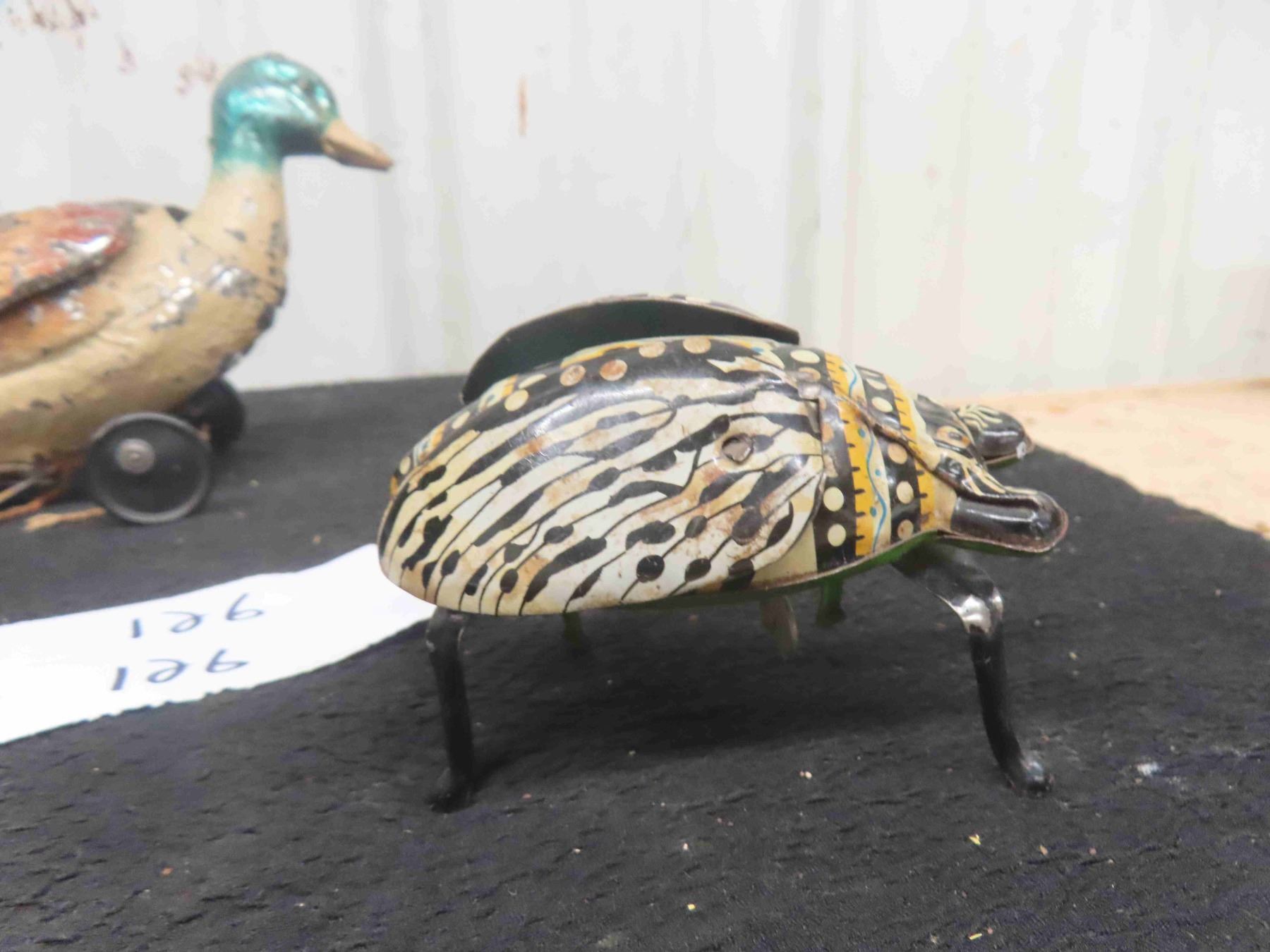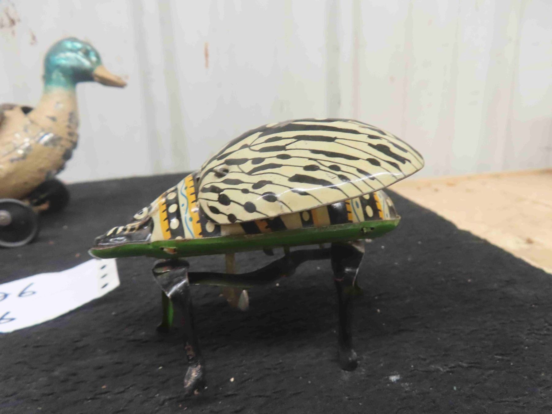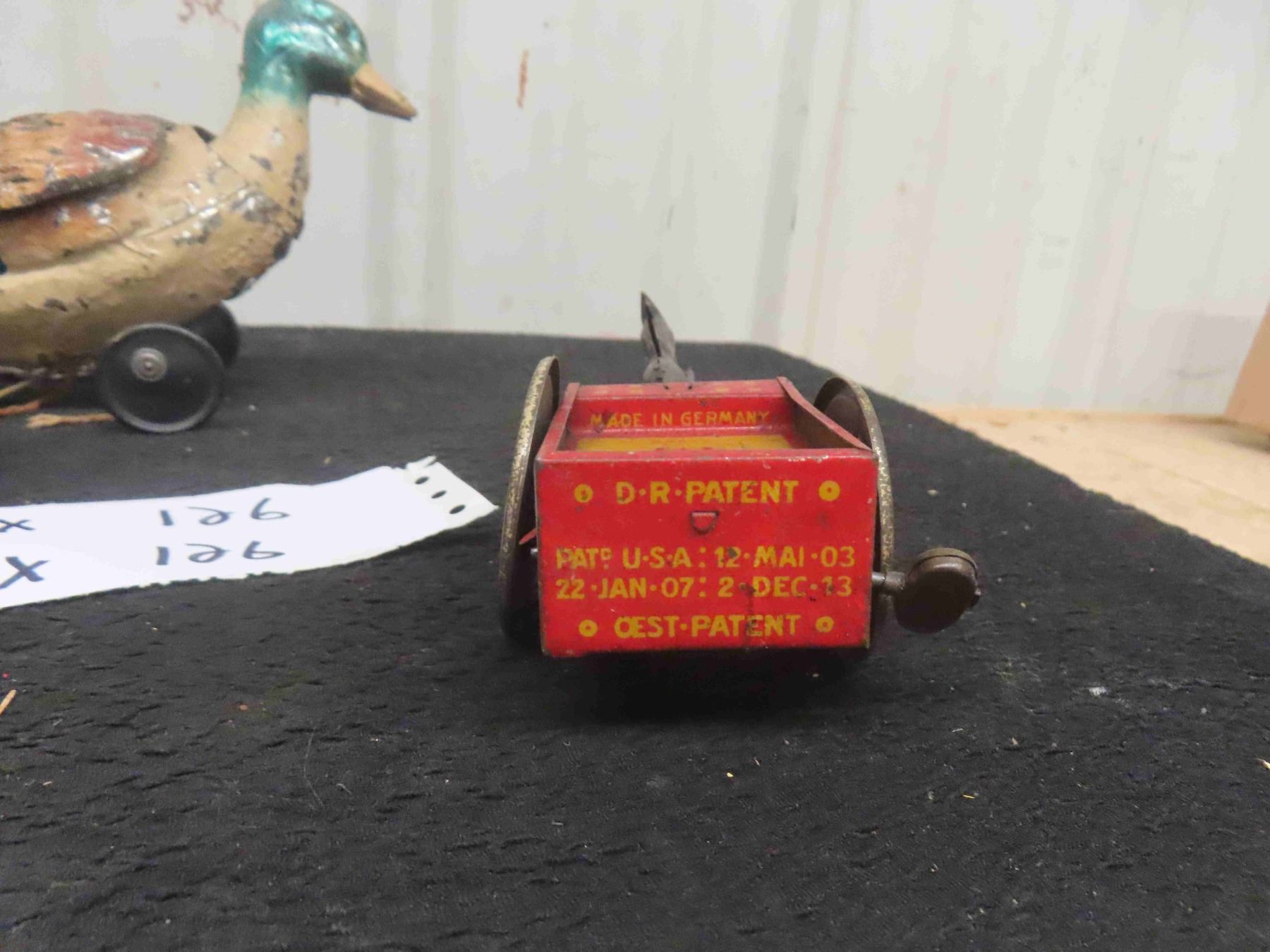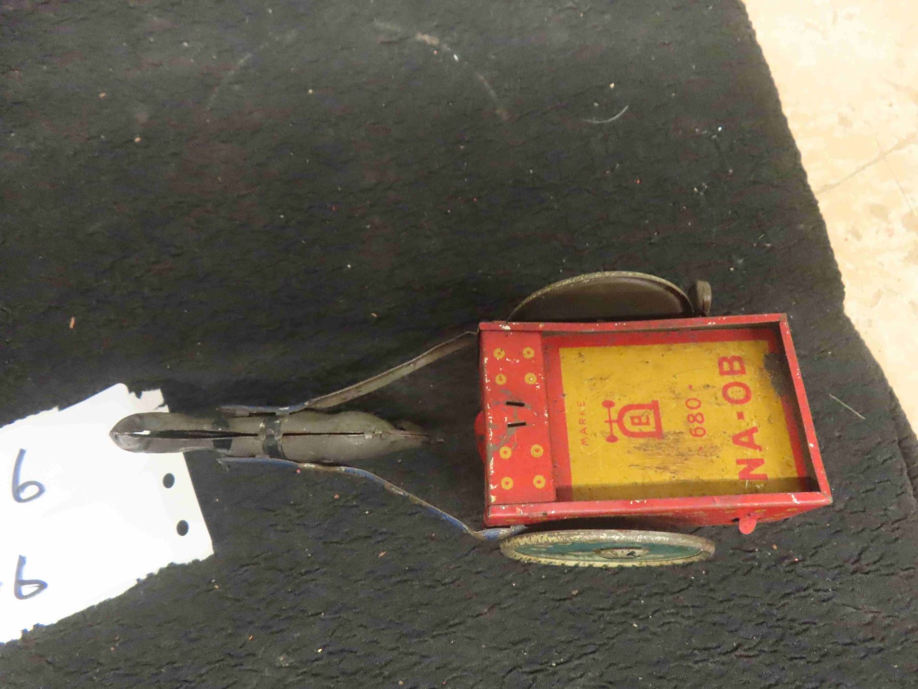 Leham Donkey + Cart -Original Wind Up, Wind Up Tin Beetle, German Guntermann Duck 3" x 5" x 8"