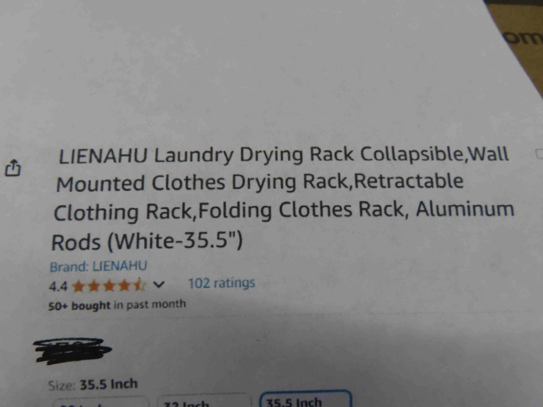 Leinahu drying rack clothing, laundry drying rack collapasible, wall mounted clothes drying rack, laundry rack wall mount , retractable clothing raack, folding clothes rack, 5 aluminum rods, (white-35") New or Store Return