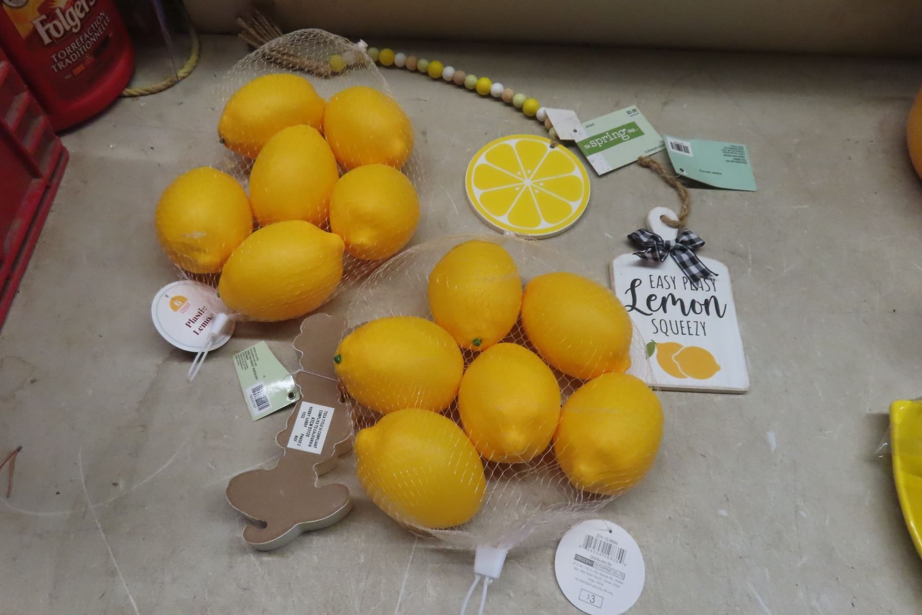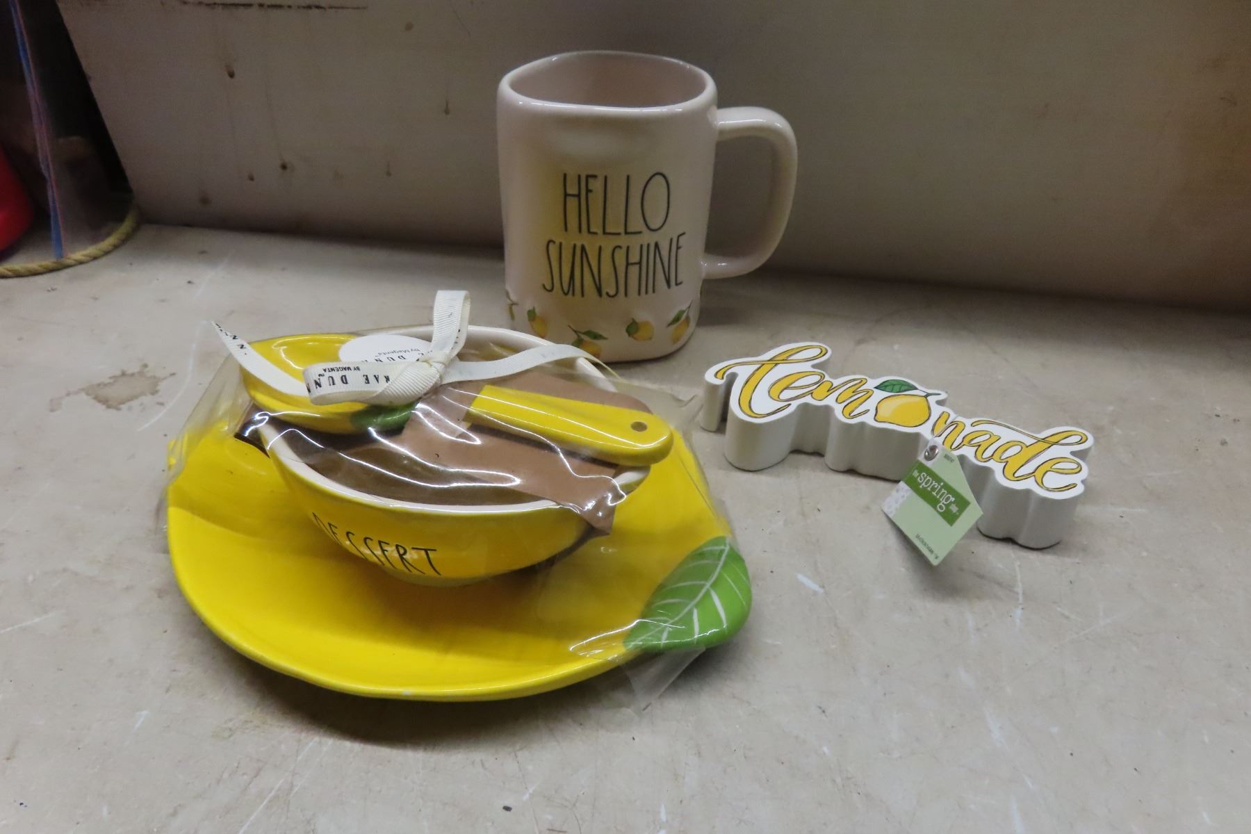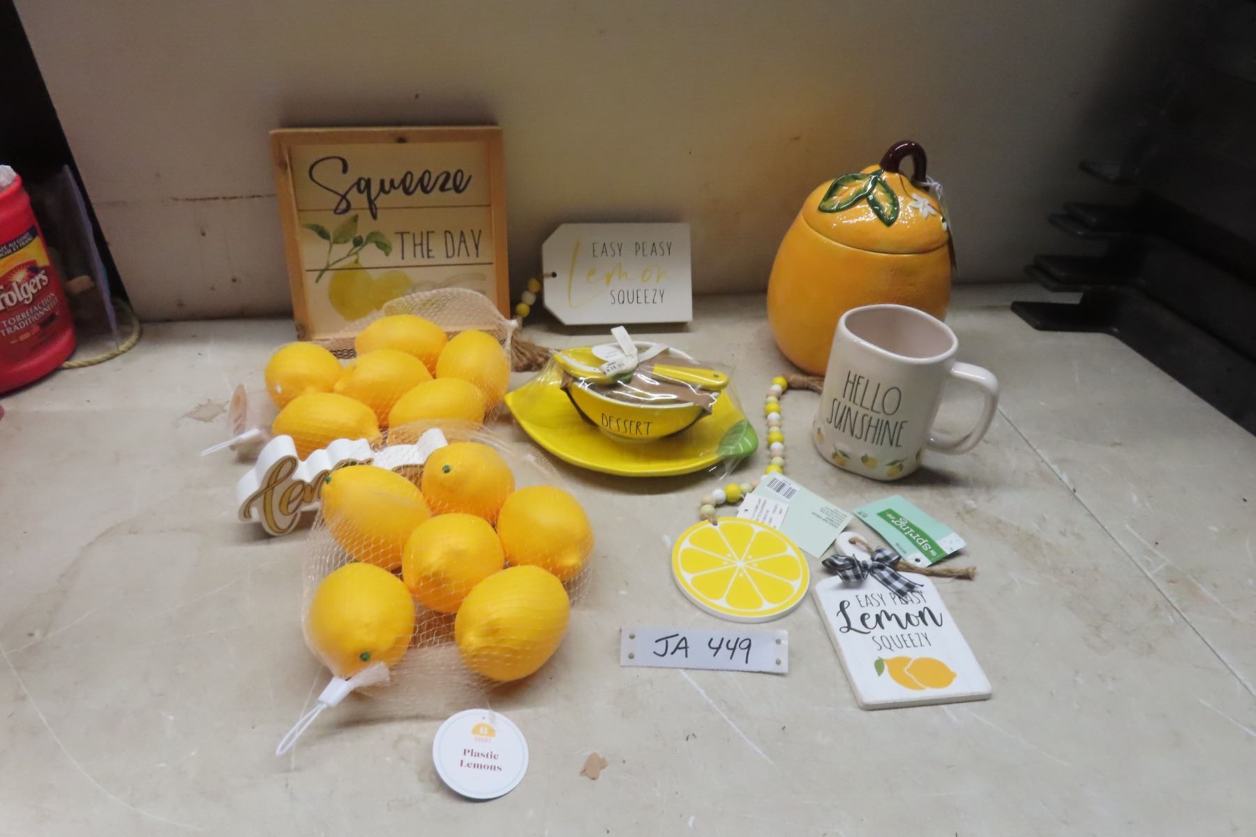 Lemon Décor: New Cookie Jar, Coffee Mug, Slogan Signs, Plastic Lemons and Dessert Bowl Set