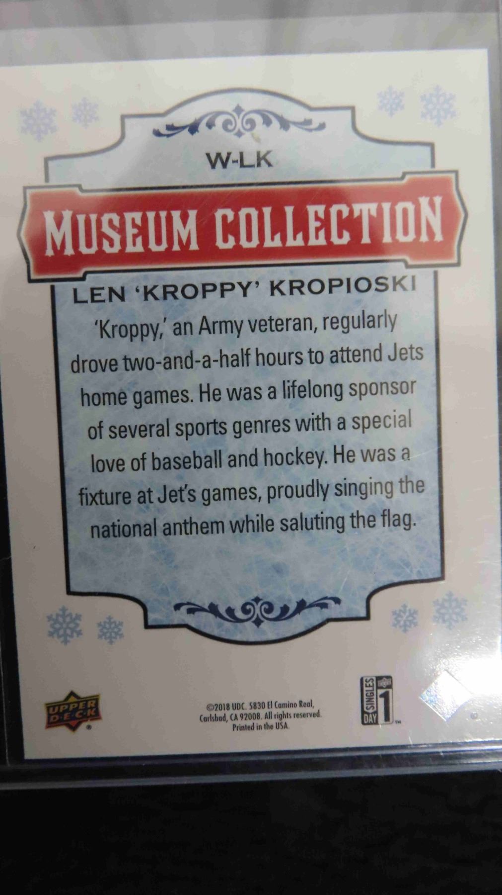 Len ' Kroppy' Kropioski Winnipeg Jets Fan Card