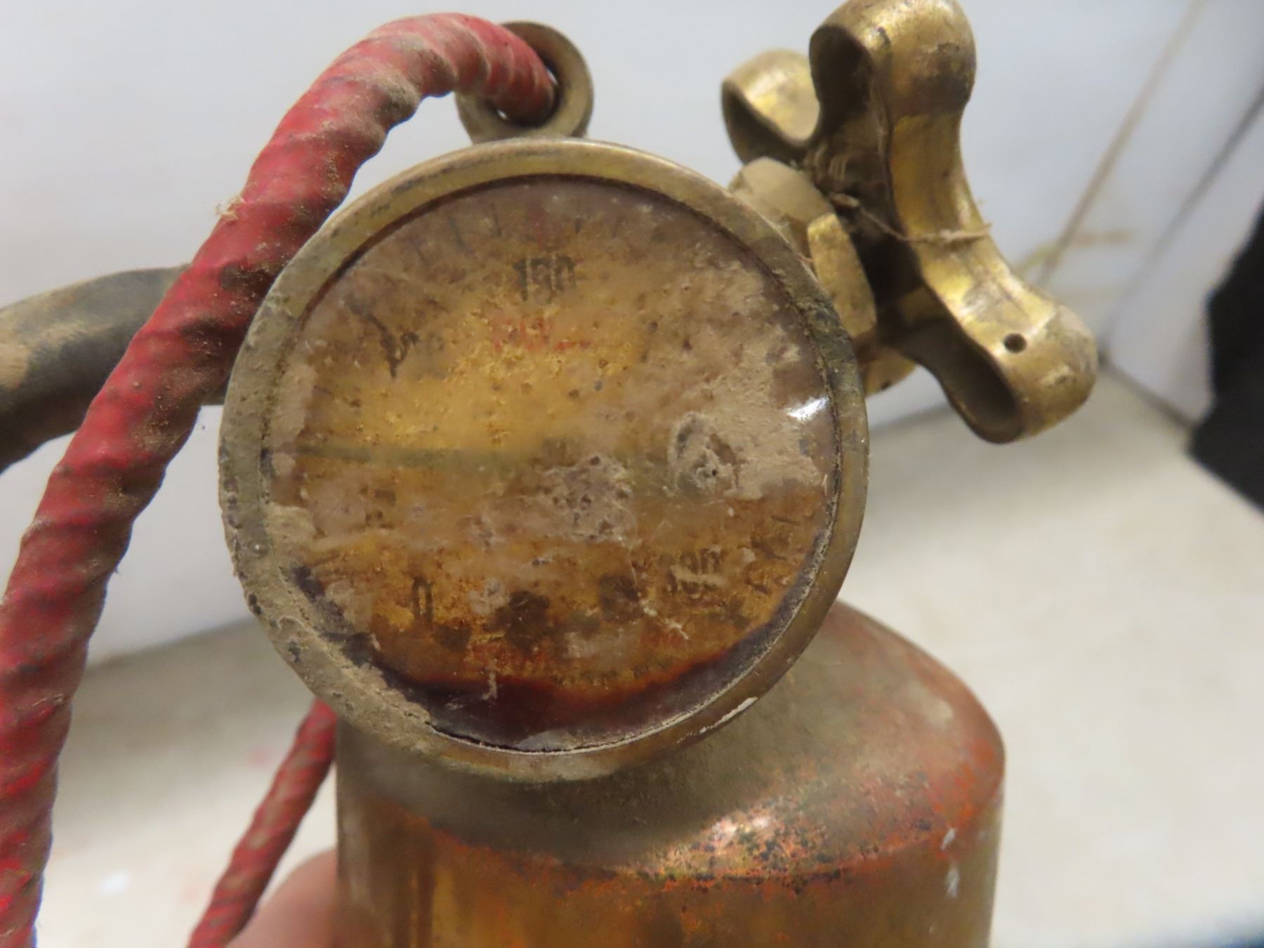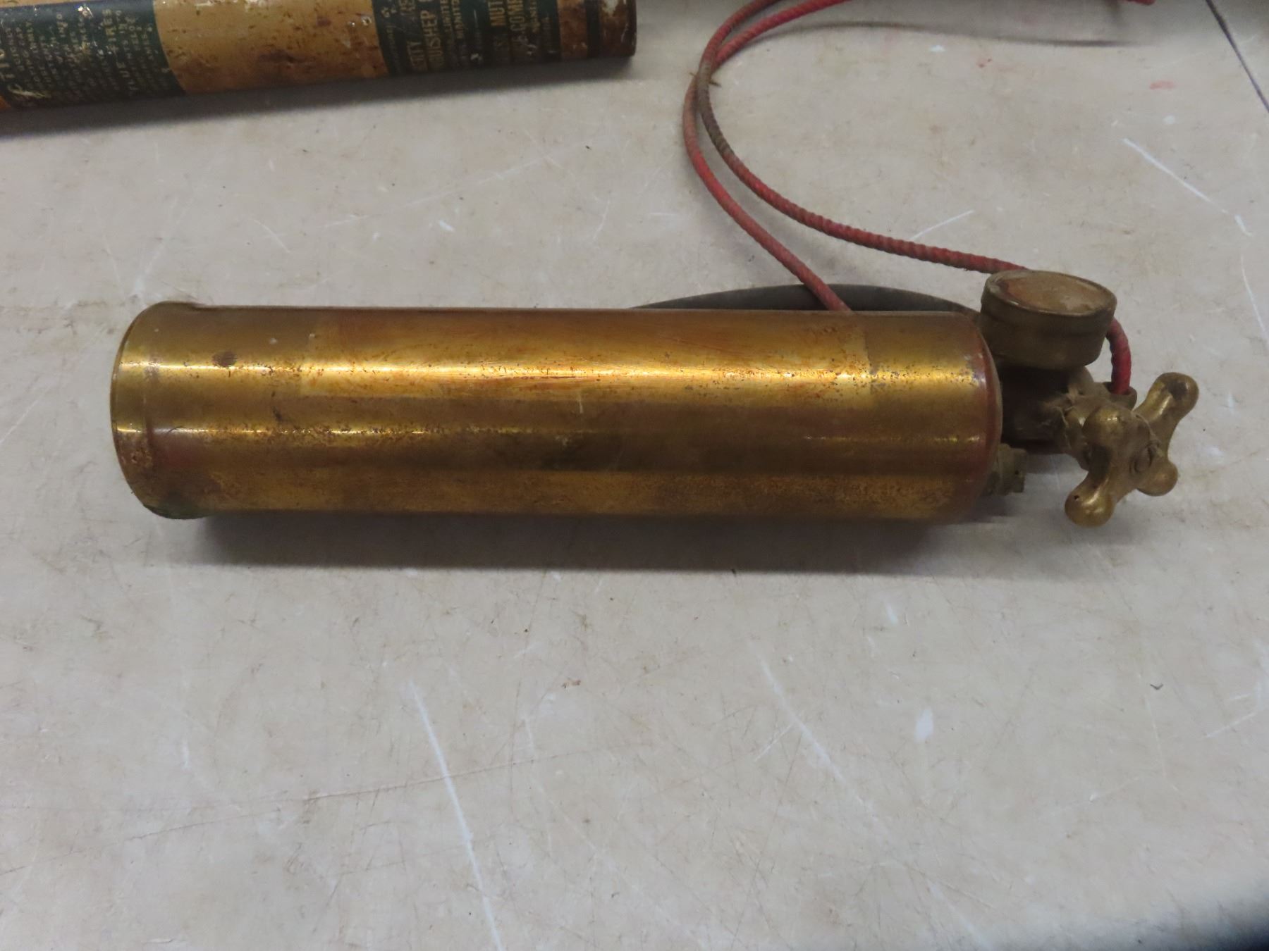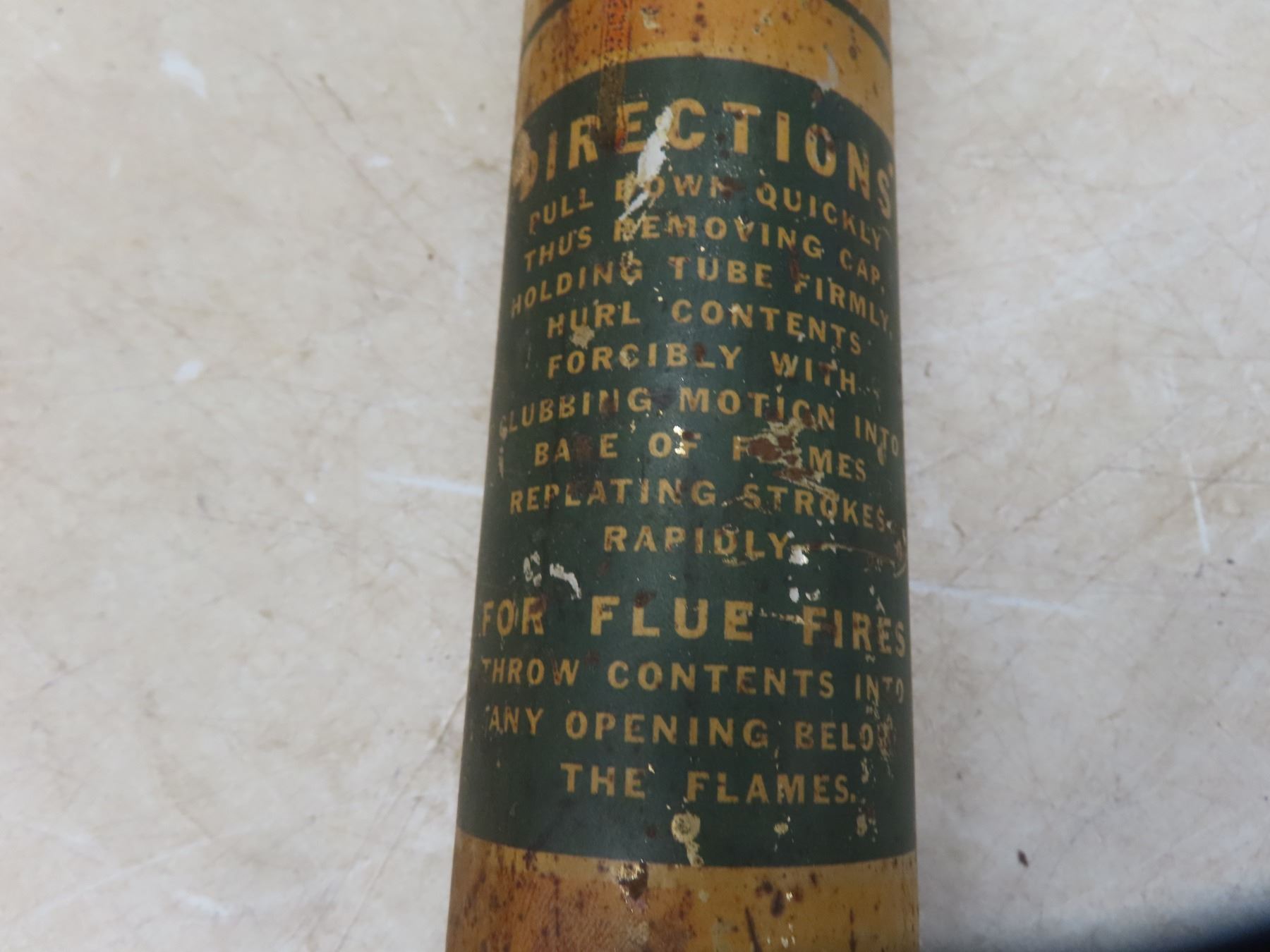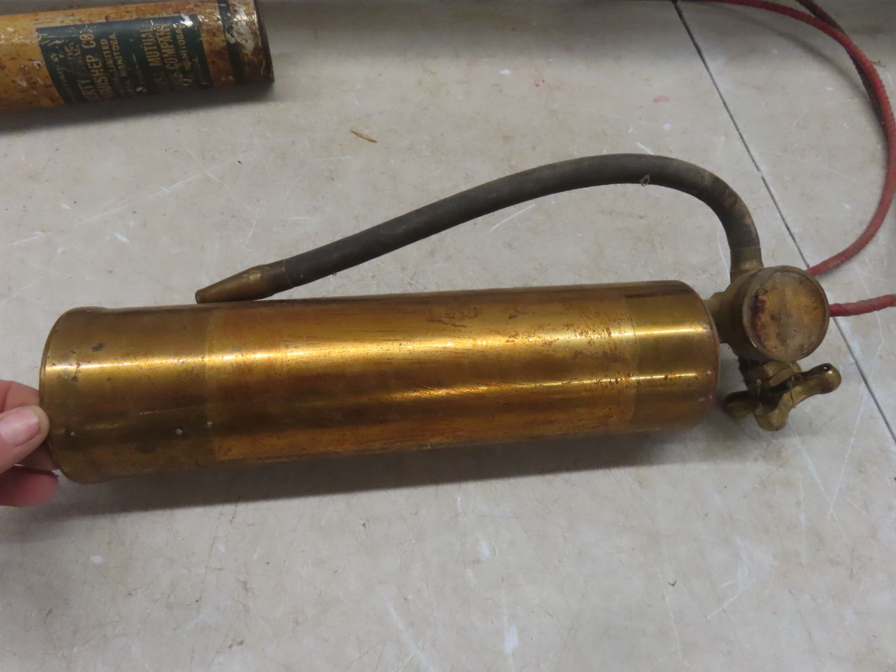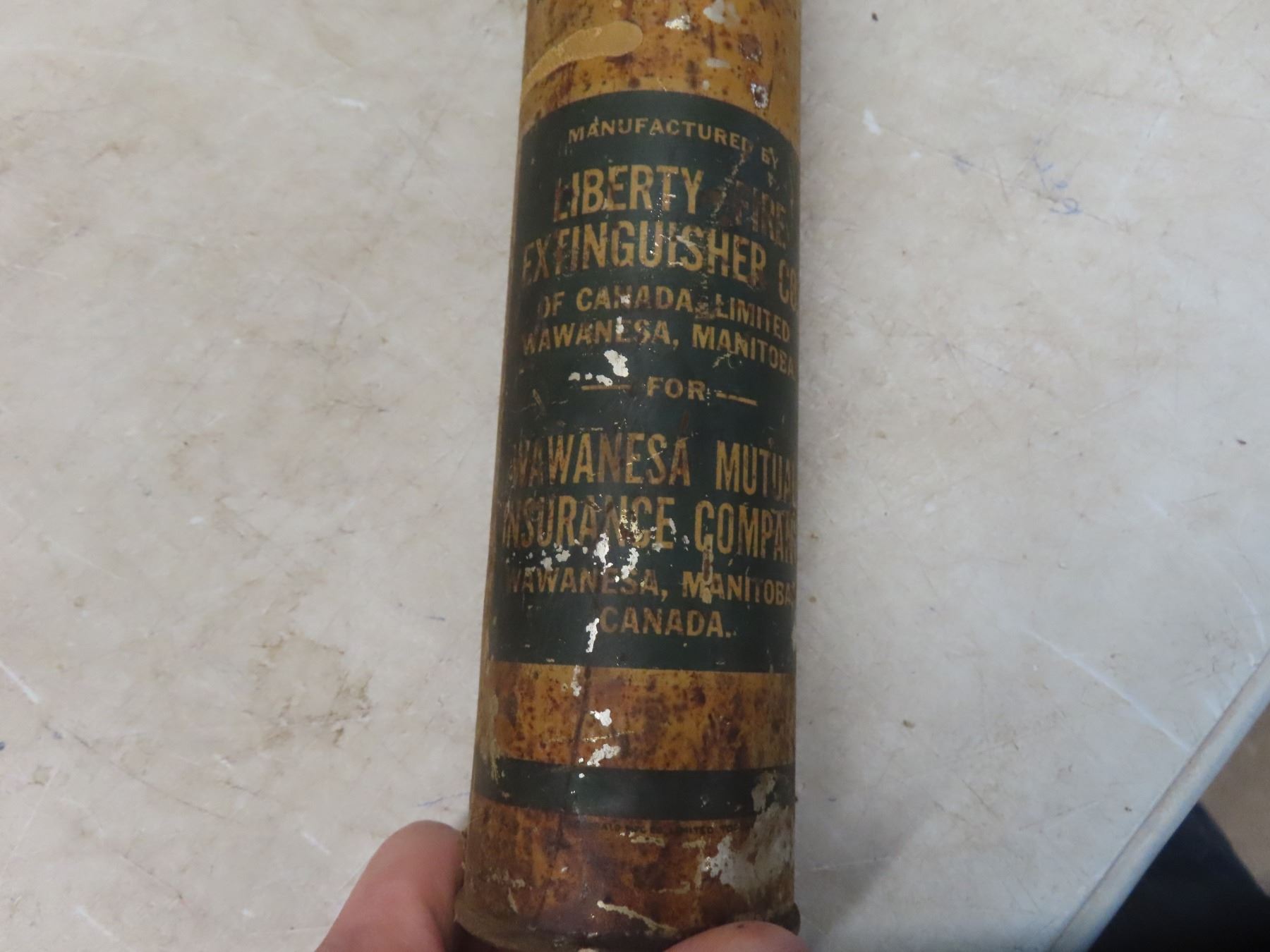 Liberty Fire Extinguisher, Ray -O- Vac Metal Sign 3 1/2"x11"+ Brass Fire Extinguisher