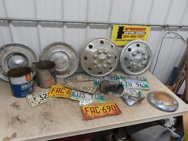License Plates, Hub Caps, Auto Horns, & Oil Cans