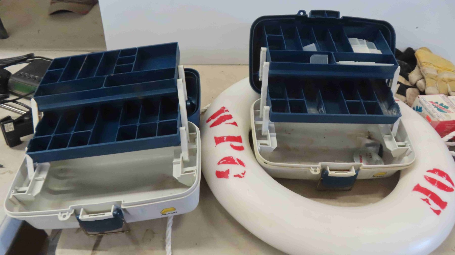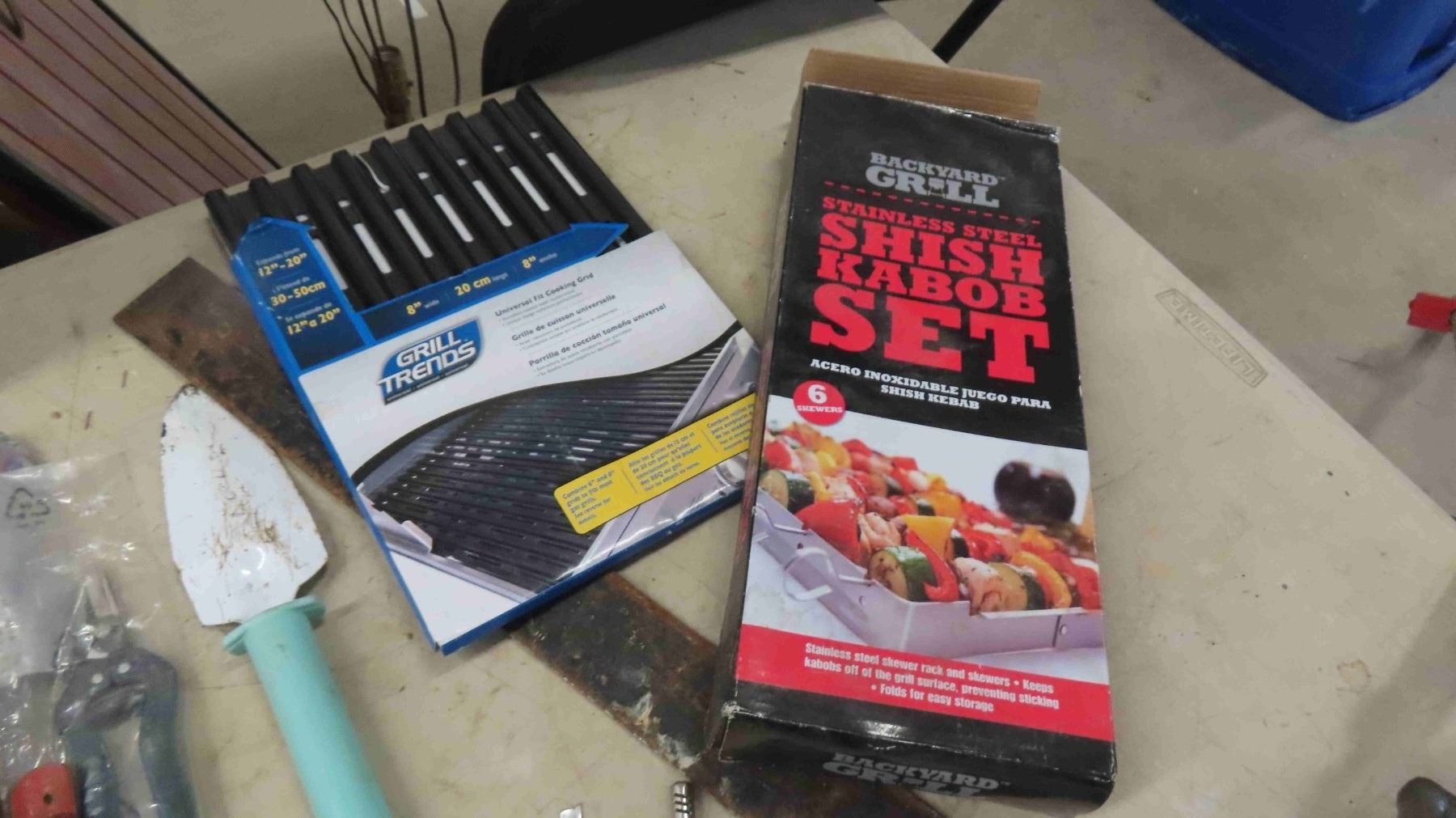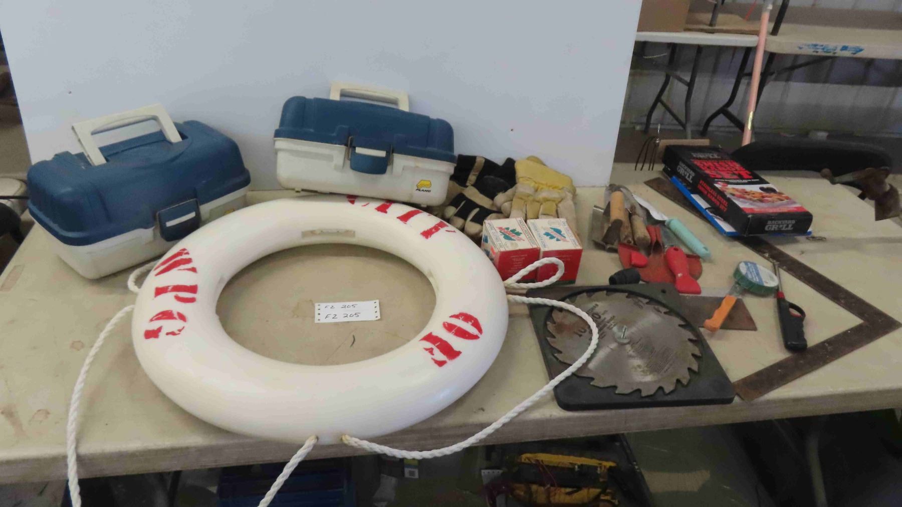 Life Preserver, Garden Tools, 10" Saw Blade, Square, New Old Stock ; BBQ Grill, Kabob Set, Tackle Boxes