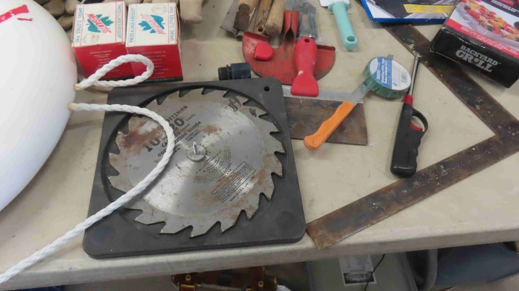 Life Preserver, Garden Tools, 10" Saw Blade, Square, New Old Stock ; BBQ Grill,
