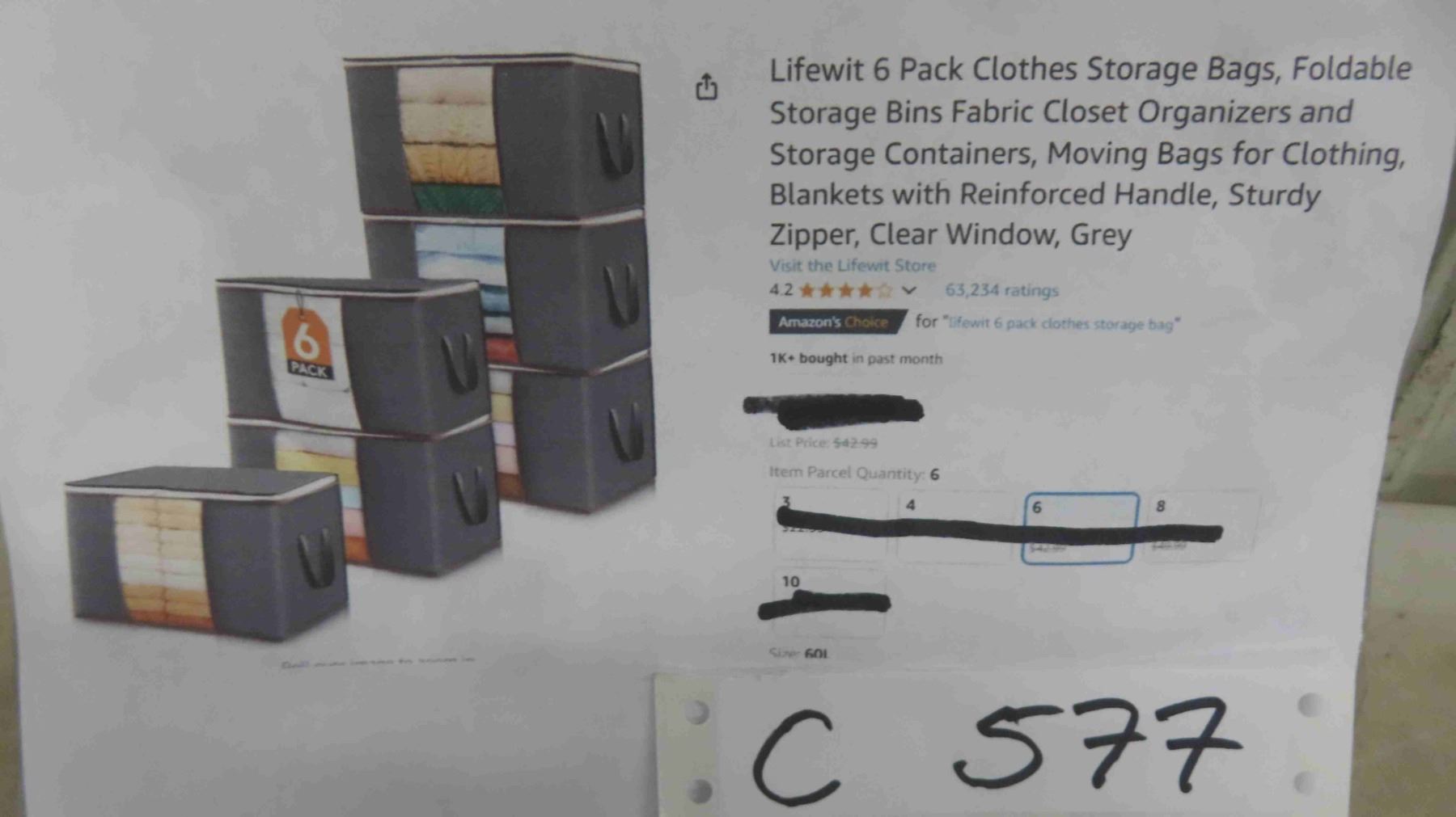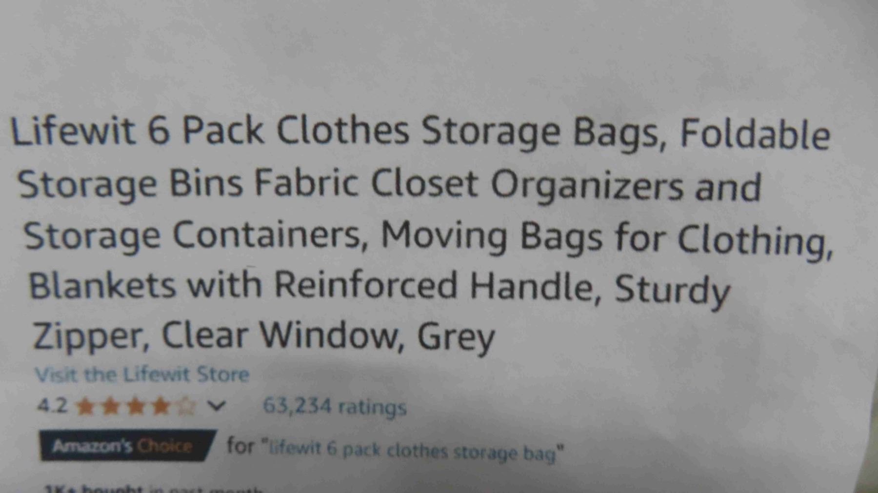 Lifewit 6 Pack Clothes Storage Bags, Foldable Storage Bins Fabric Closet Organizers and Storage Containers, Moving Bags for Clothing, Blankets with Reinforced Handle, Sturdy Zipper, Clear Window, Grey - New or Store Return