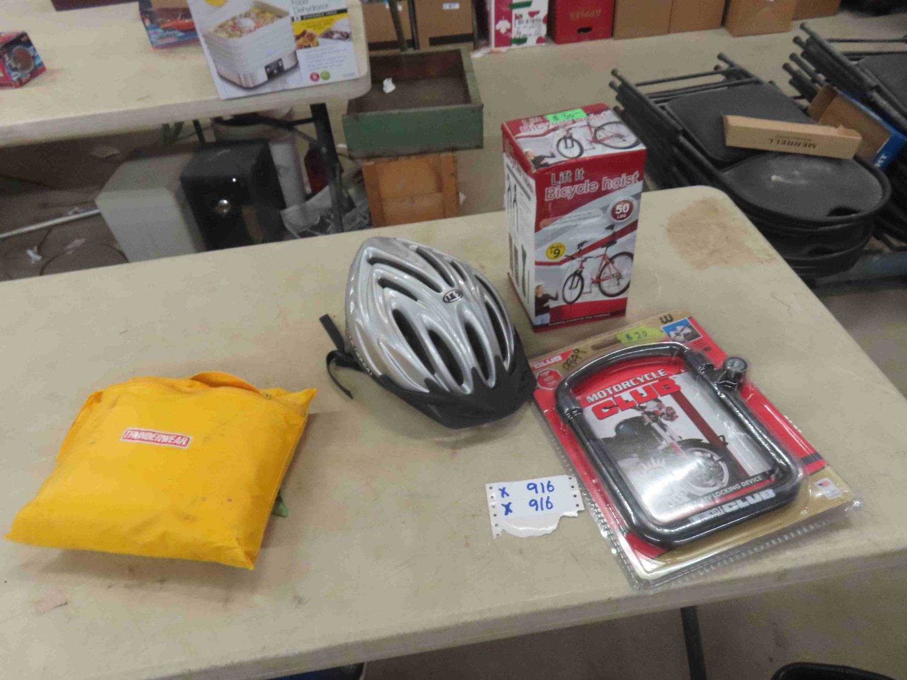 Lift It Bicycle Hoist, Motorcycle Club, Thunder Wear Rain Gear, Bicycle Helmet