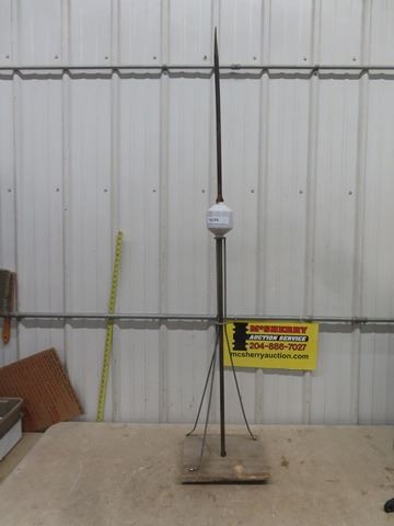 Lightening Rod with White Glass Ball on Wooden Stand 64" Tall