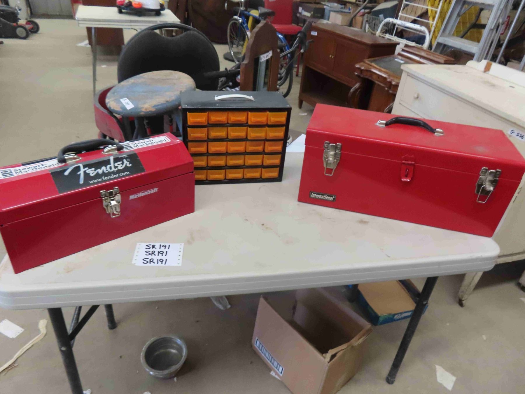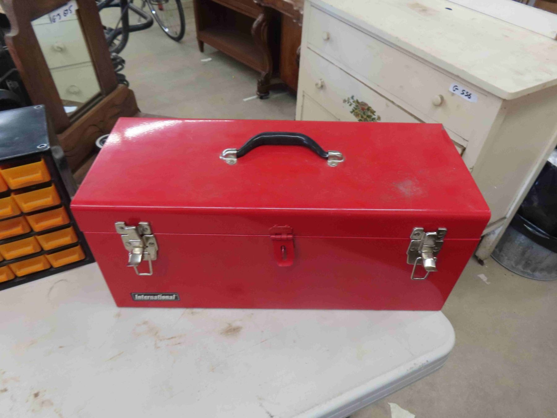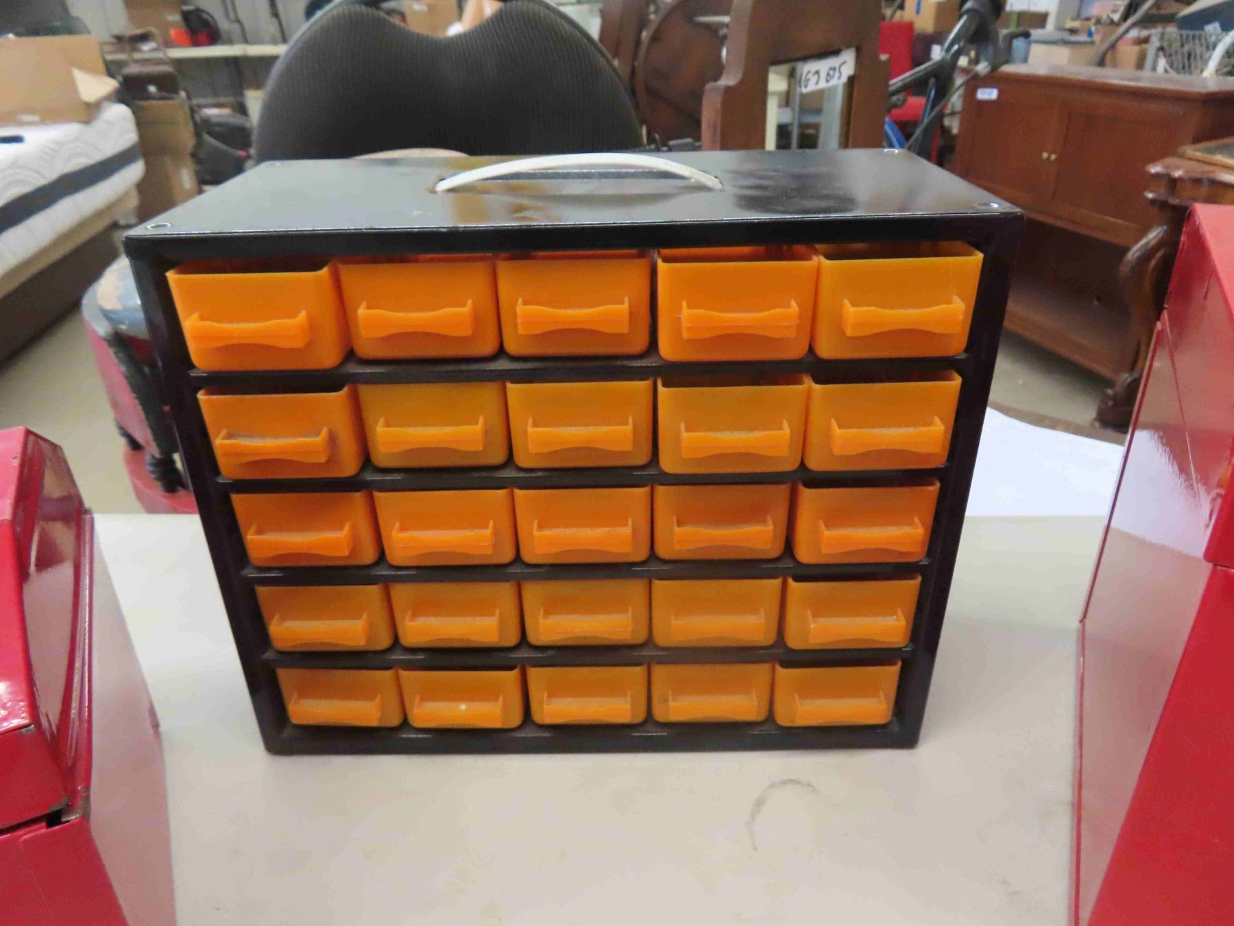 Like New International Carry Tool Box, Mastercraft Tool Box, 25 Drawer Parts Organizer