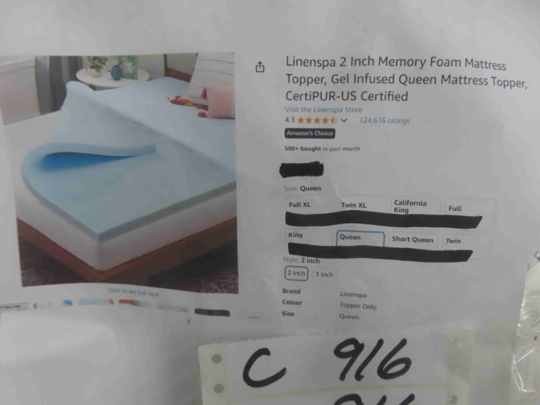 Linenspa 2 Inch Memory Foam Mattress Topper, Gel Infused Queen Mattress Topper, CertiPUR-US Certified - New or Store Return