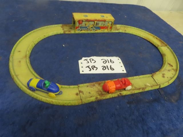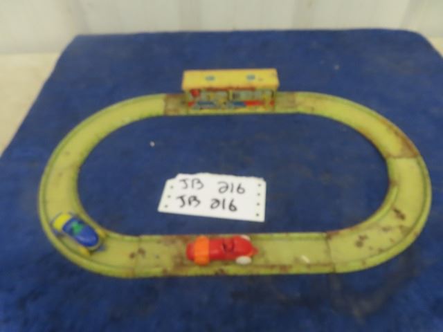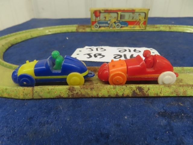 Lionel Metal Car Race Set + 2 Plastic Cars Track Spread 10" x 17"