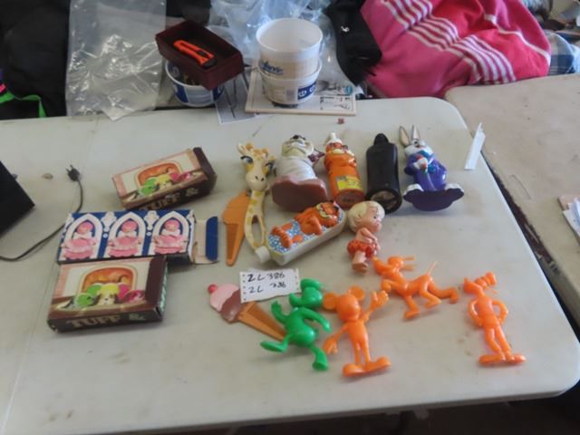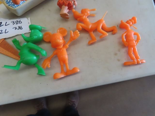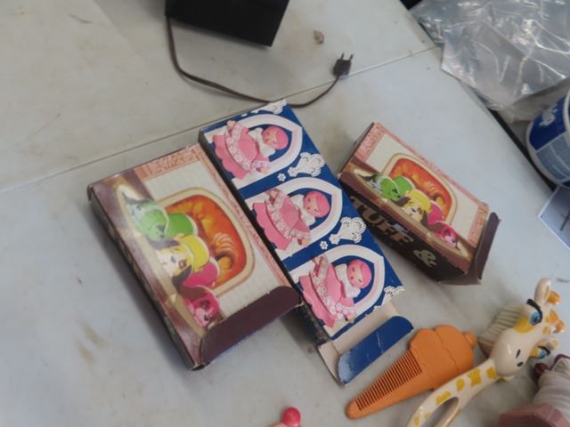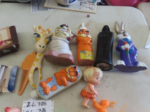 Liquid Soap Container Displays, box of Soap, Comb & Disney Figurines