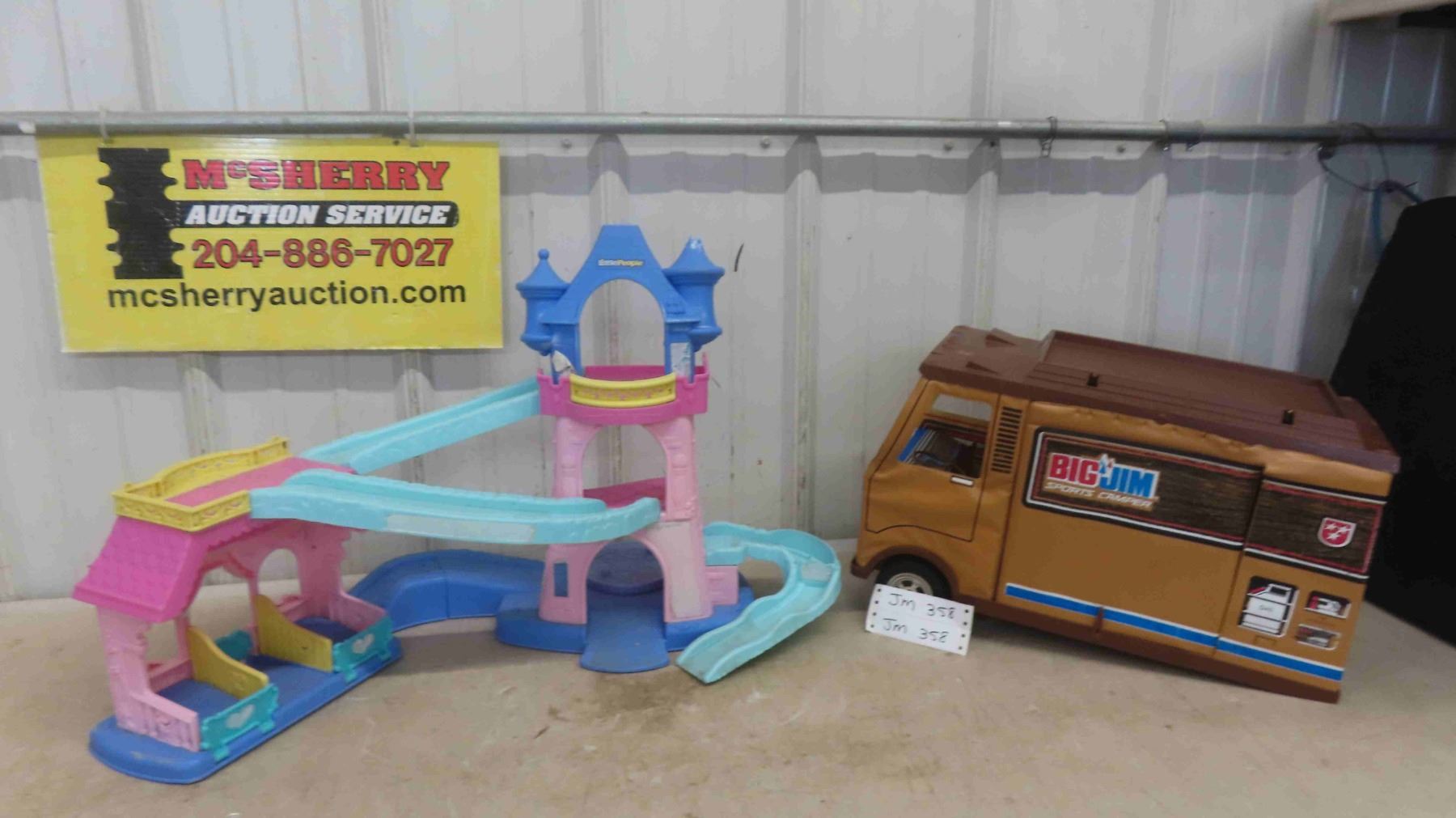 Little People Castle , Big Jim Sports Camper (Needs Back Wheels)