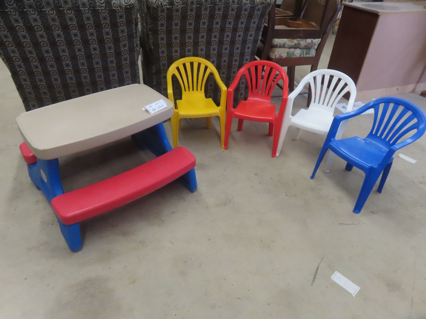 Little Tykes Picnic Table + 4 Childrens Plastic Lawn Chairs