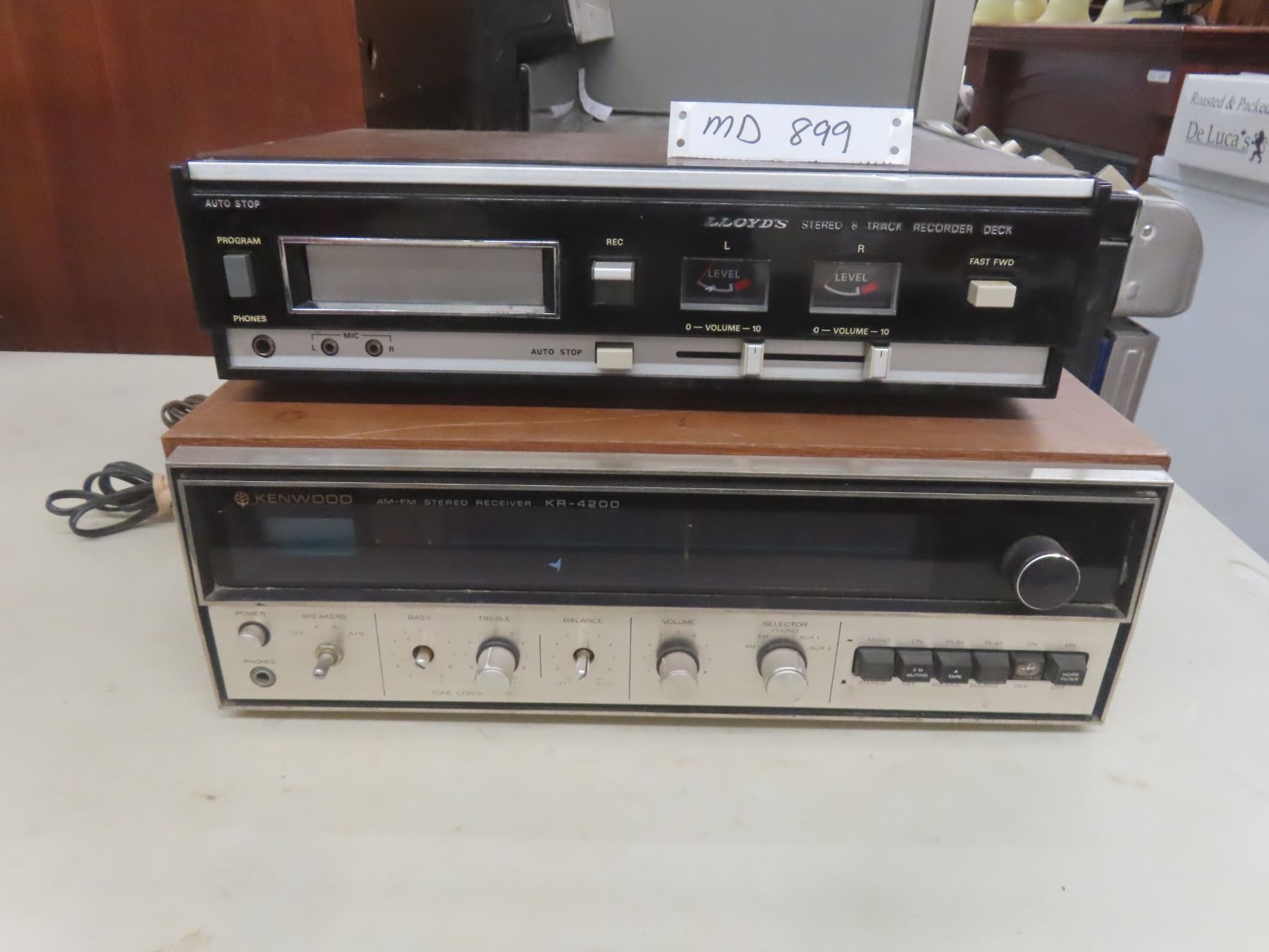 Lloyds Stereo 8-Track Recorder Deck with New Belt Installed, Plus Kenwood AM/FM Stereo Receiver - Working Condition