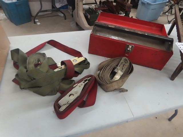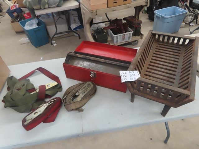 Load Straps, Metal Tool Box & Fire Grate Pit