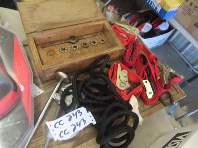 Load Straps, Tap + Die Set, Light, Pipe Wrench, Gas Can