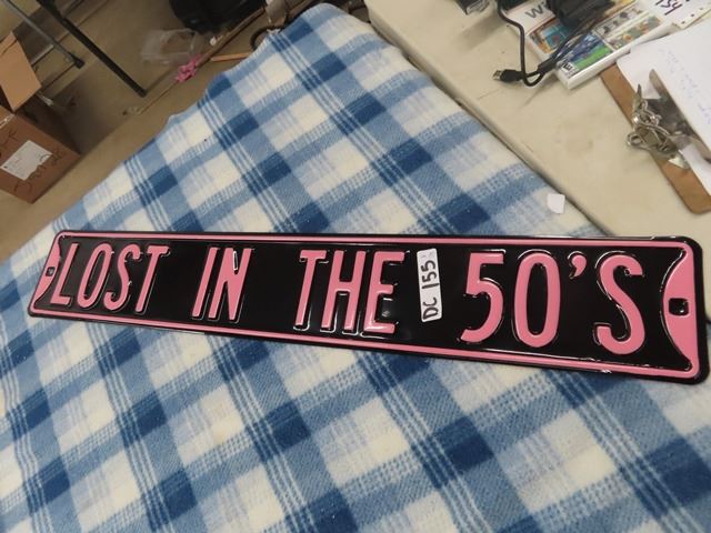 Lost in The 50's Metal Embossed Sign 6" x 36" Plus 2 Garage Stop Signs