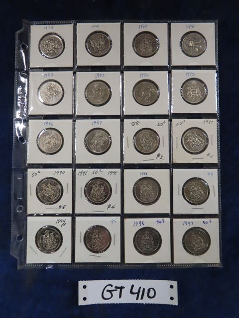 Lot of 20 Canada 50 cent Coins ; 1978- 1997