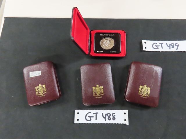 Lot of (4) 1970 Canada $1 Coins, Manitoba 100th Anniversary - Royal Canadian Mint in Gift Cases - No Outer Wrap