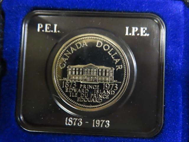 Lot of (4) 1973 Canada $1 Coins, PEI 100th Anniversary - in Gift Cases - No Outer Wrap - Royal Canadian Mint