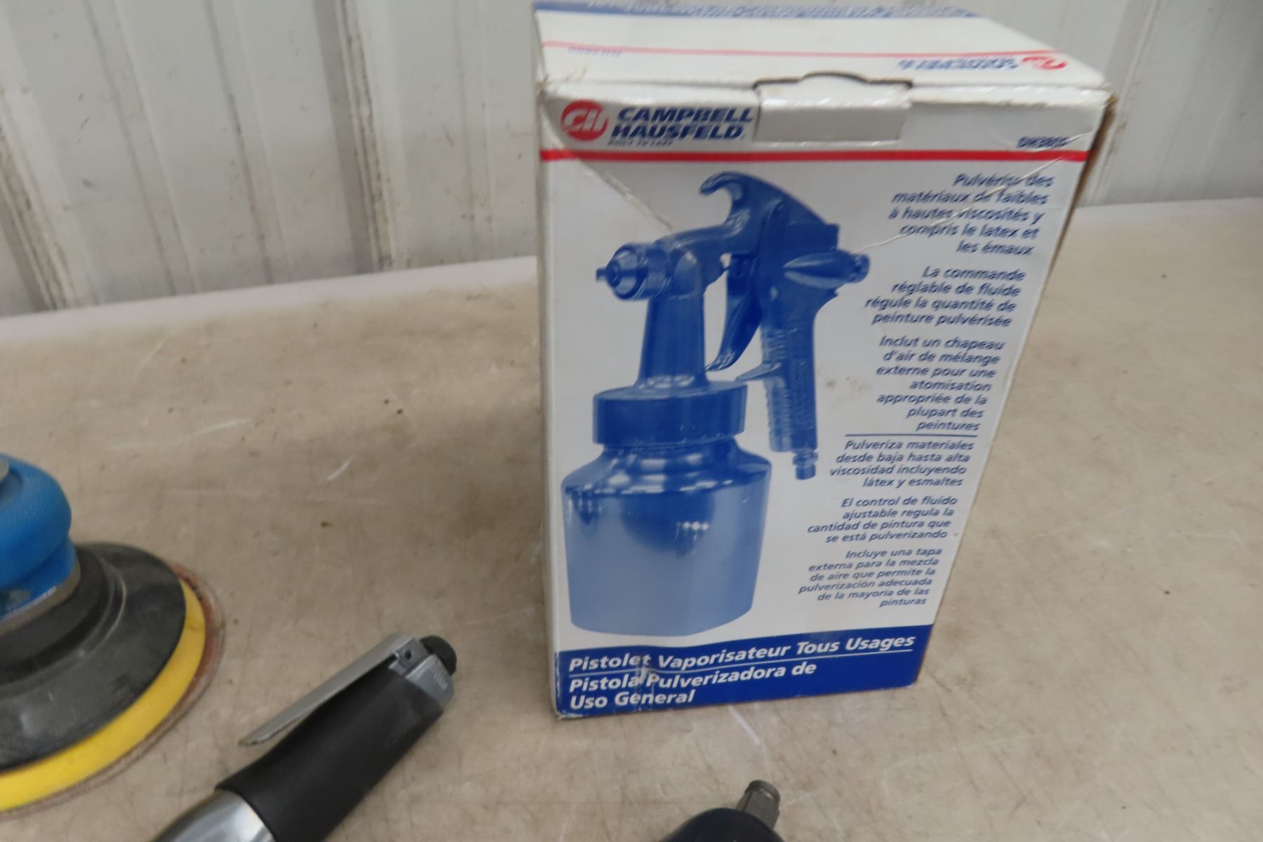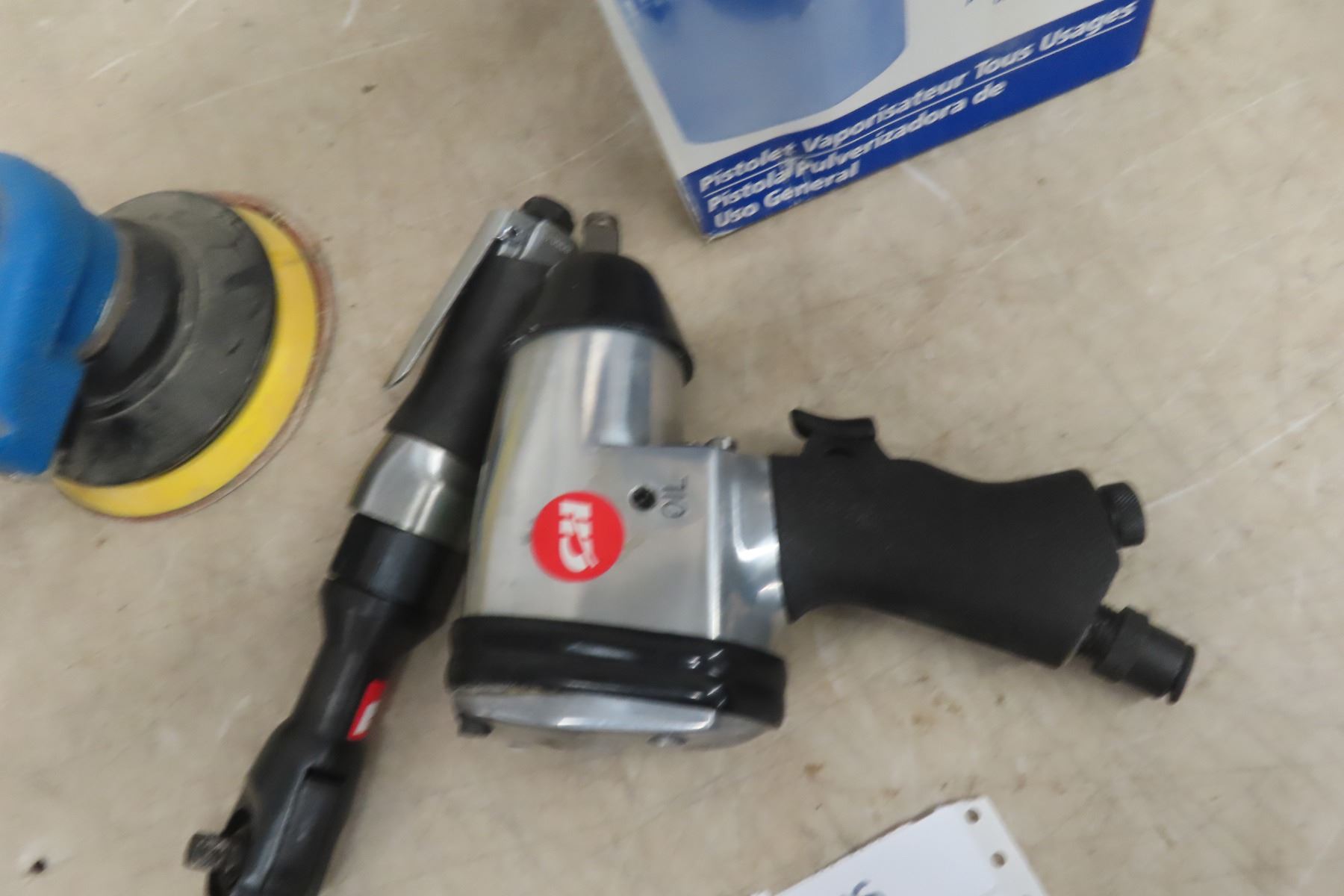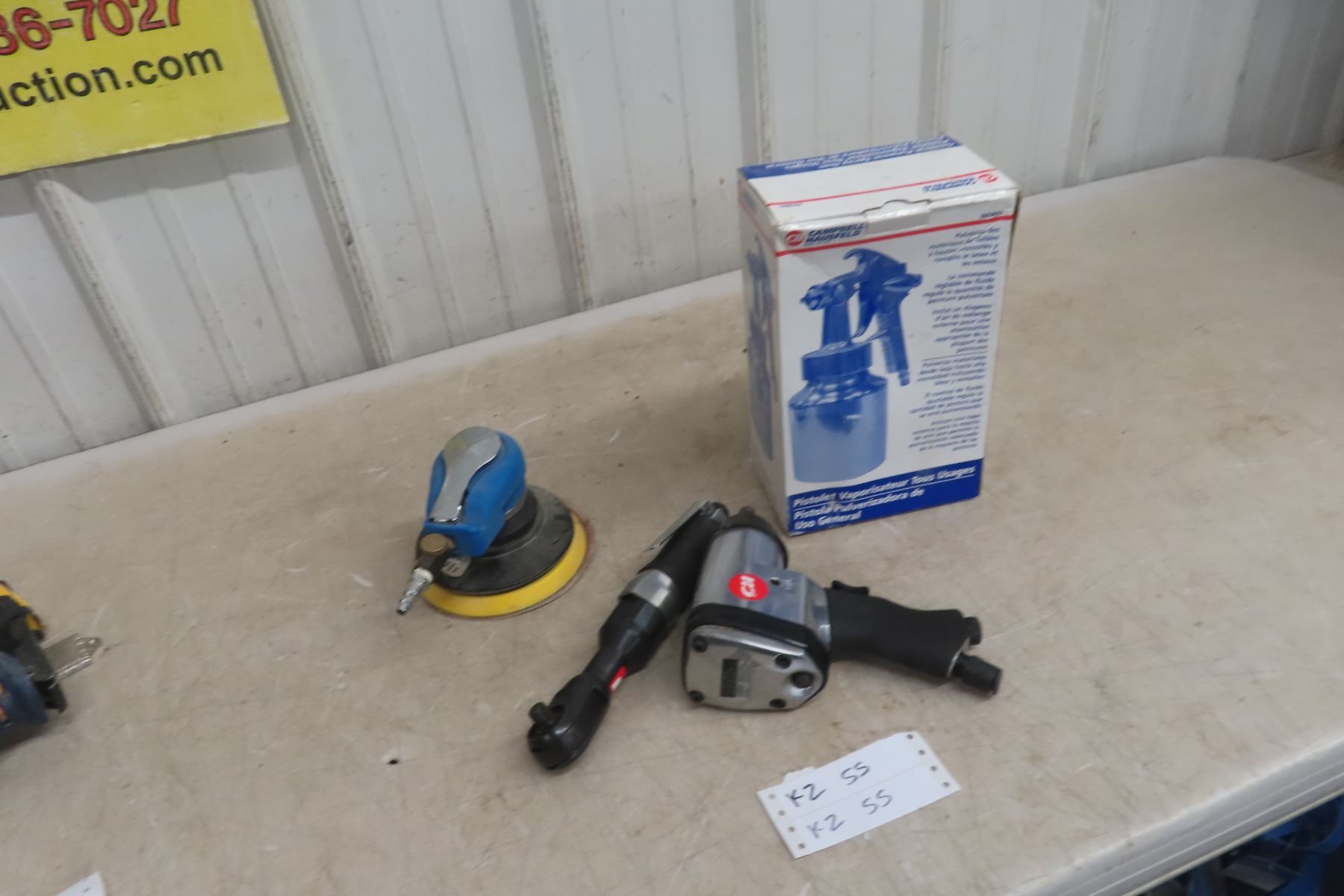 Lot of 4 Air Tools (3 New Paint Sprayer 1/2" Impact 3/8" Ratchet Orbital Sander