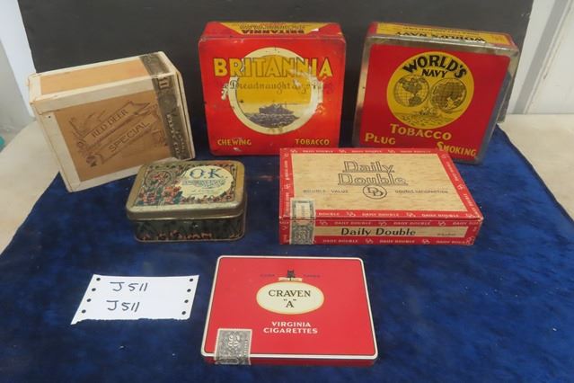 Lot of 6 Tobacco Tins + Boxes ; Brittania, Worlds Navy, Craven A, Red Deer Special, Daily Double, OK