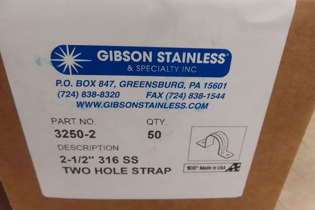 Lot of (74) 2 1/2" 316 SS Two Hole Straps - Gibson Stainless - Stainless Steel Pipe Hangers