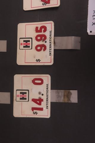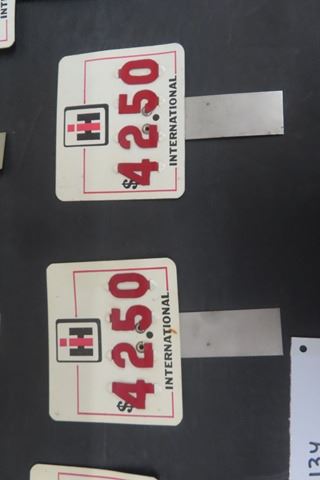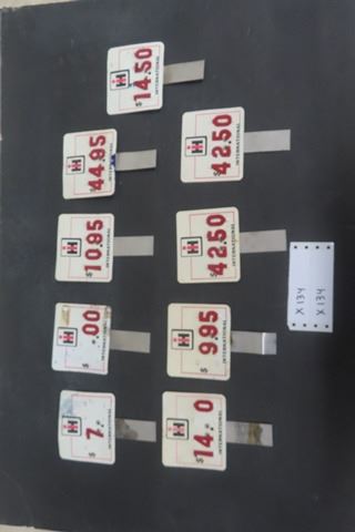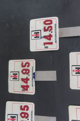 Lot of 9 International Harvester Dealer Price Marker Tags - Plastic on Metal Tabs - Prices Interchangeable