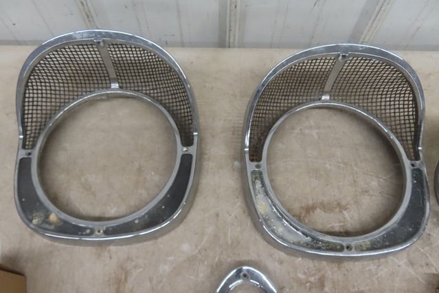 Lot of Assorted 50's Chevy Parts ; Headlight Bezels,  Tail Light Chrome, Filler Cap, Filter, Lenses,