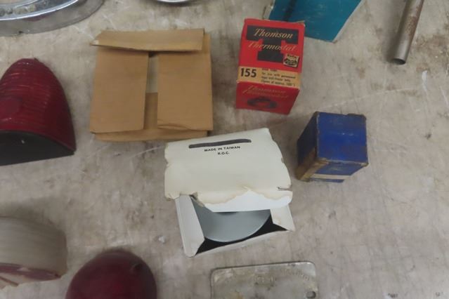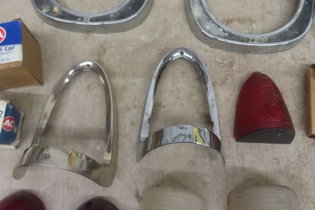 Lot of Assorted 50's Chevy Parts ; Headlight Bezels,  Tail Light Chrome, Filler Cap, Filter, Lenses, plus more