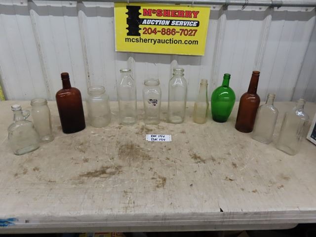 Lot of Assorted Glass Bottles ; Clear, Brown, Green - some Embossed