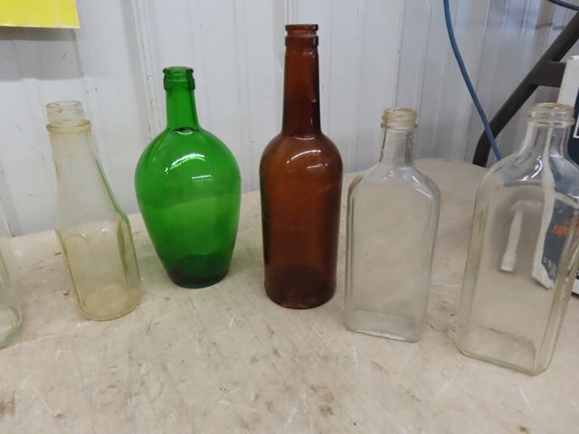 Lot of Assorted Glass Bottles ; Clear, Brown, Green -