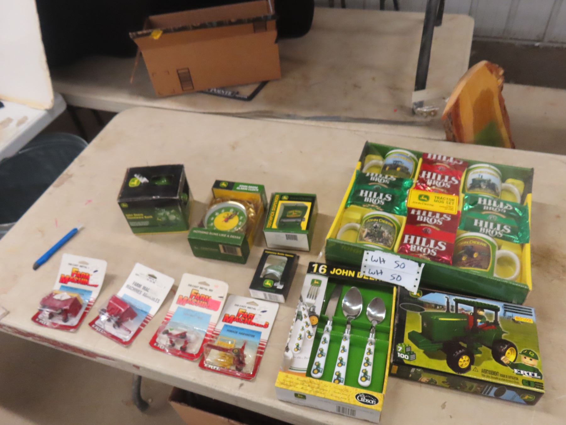 Lot of John Deere Collectible Items + Farm Implement Toys
