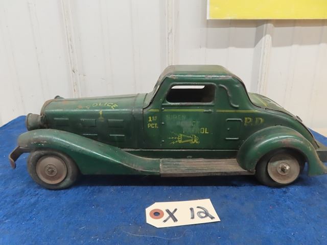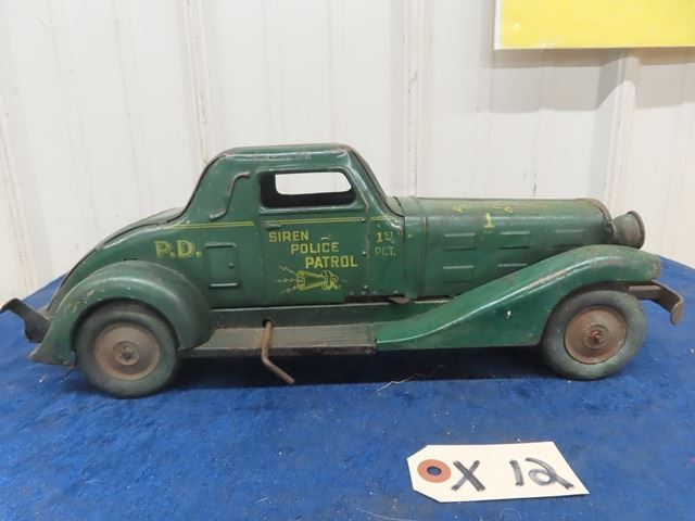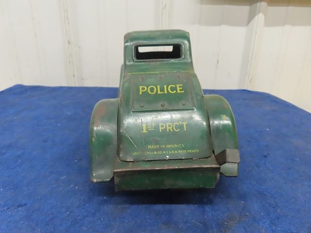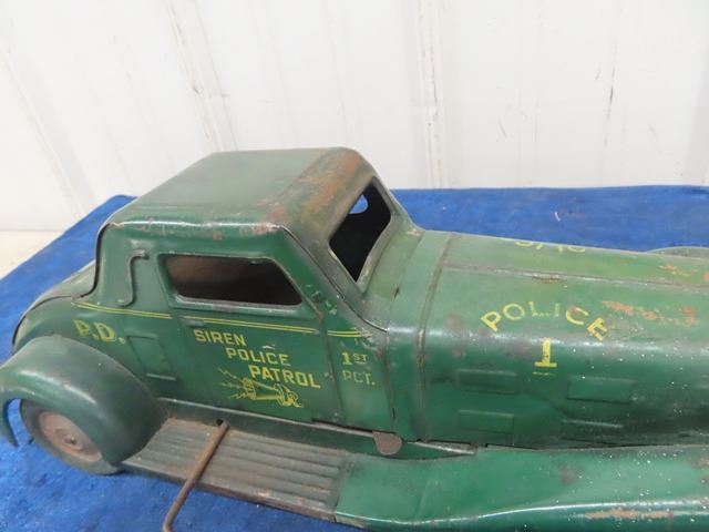 Louis Marx Metal Siren Police Patrol Car - Wind up Action + Battery Siren ( I beleive) 15" x 5.5" x 5.5"