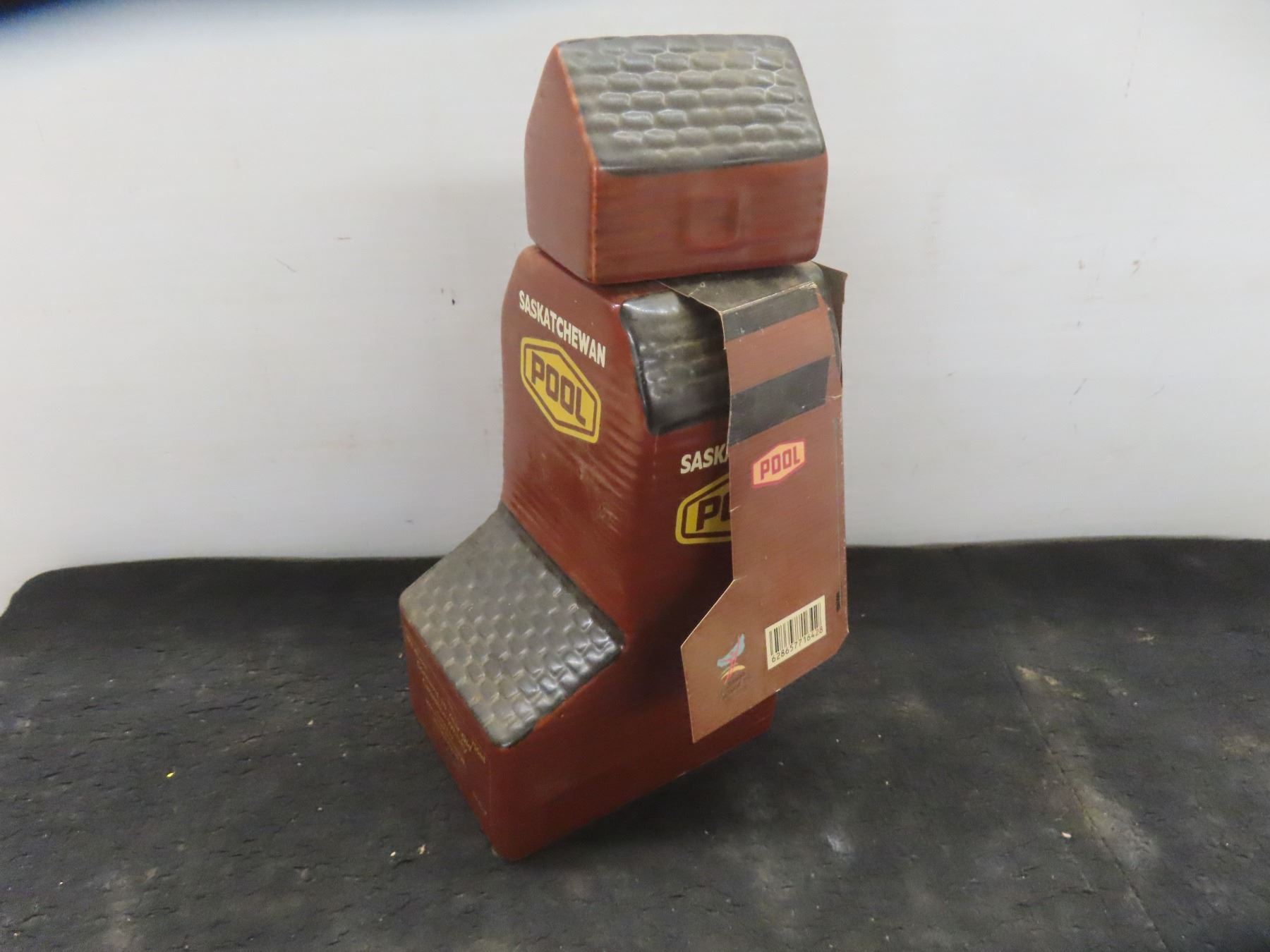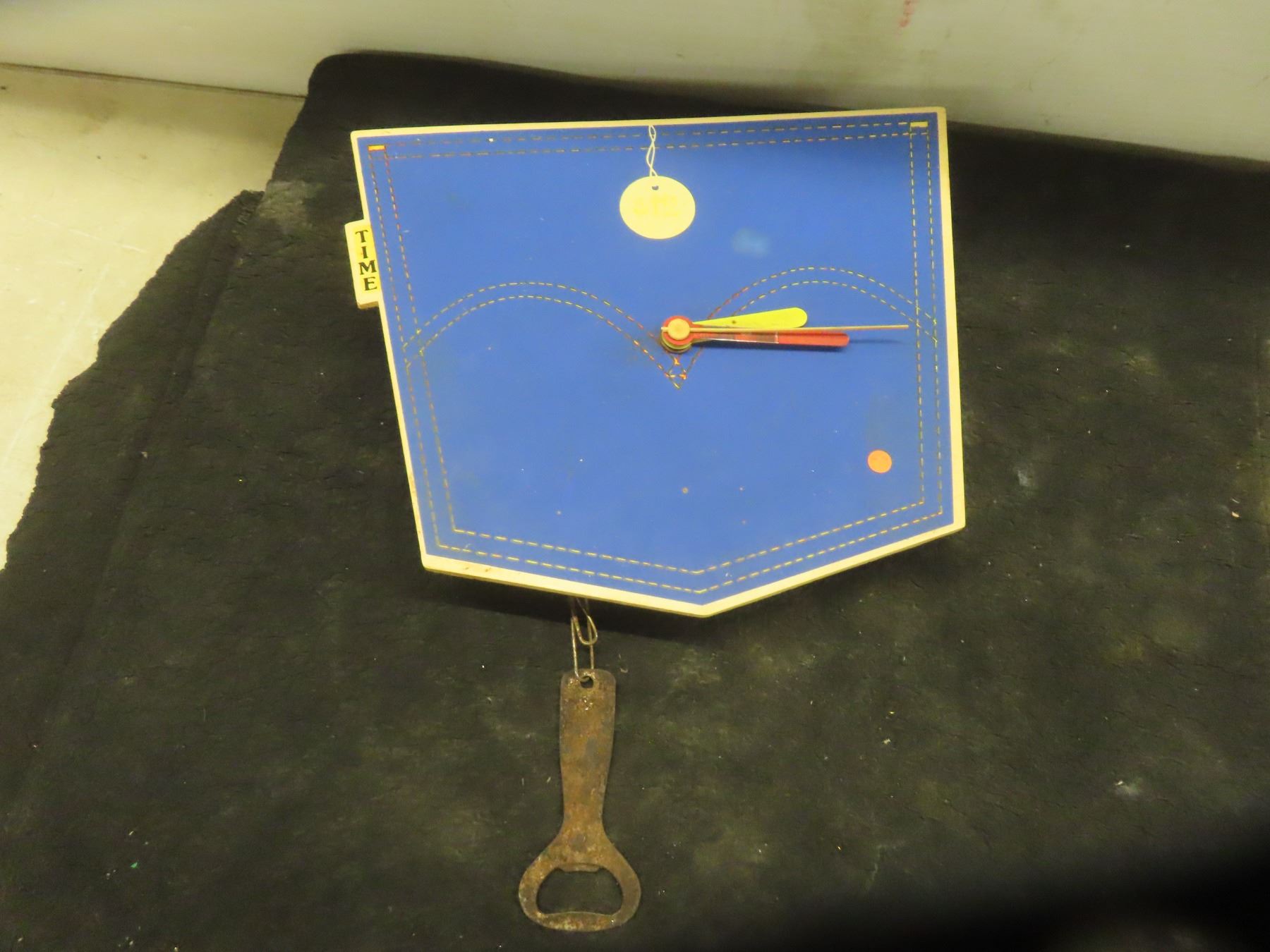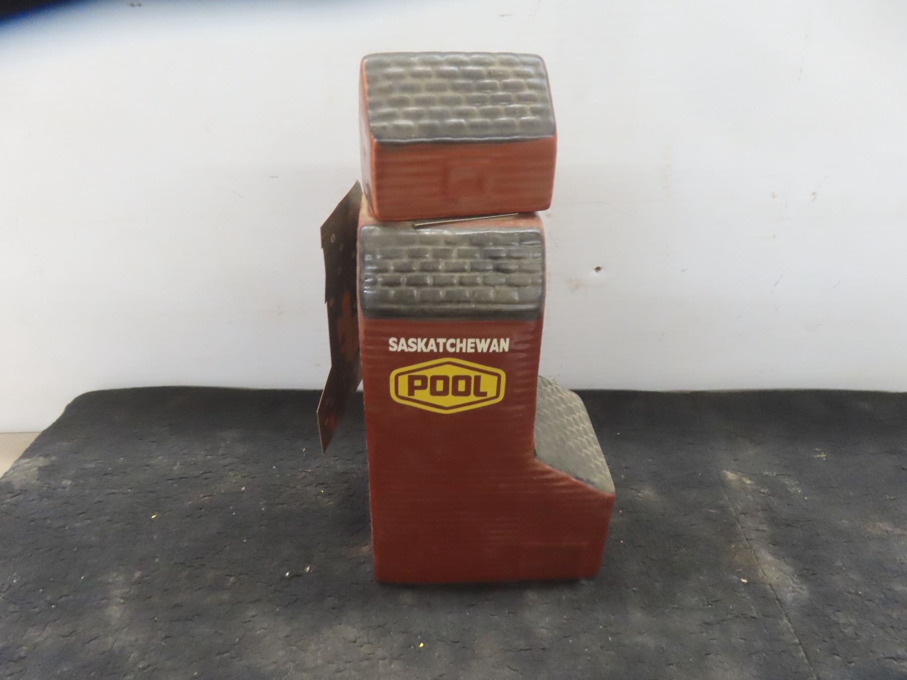 Lunkers Bait & Tables Thermometer 17  H, Saskatchewan Pool Decanter and Time Clock