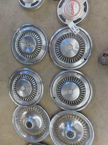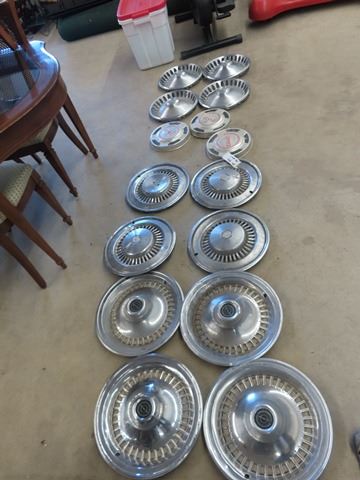 (M) Approx 15 Hubcaps - Set of 4 Thunderbirds, Set of 4 Cadillac, Set of 4 Plymouth, 3 GMC
