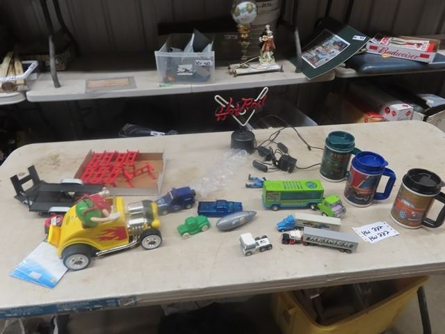M&M Car, Tonka, Various Toys, Street Rod Coffee Cups, Light Up Hot Rod Man Cave Light plus more