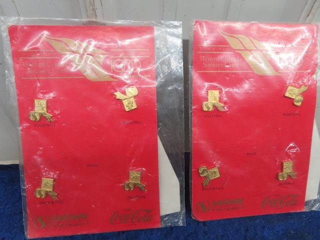 MB Crocus Vest w Pin Collection, 1999 Safeway Coca Cola Summer Games Pin, Jewelry, Key Chains W Sayi
