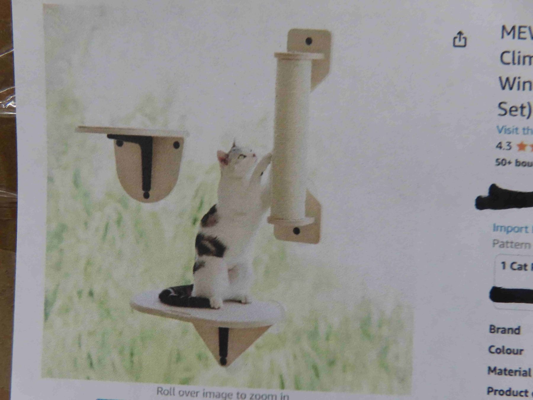 MEWOOFUN window perch hammock with vlimbing steps and scratching post- wooden window mounted cat bed ( 3 pcs cat climber set) New or Store Return
